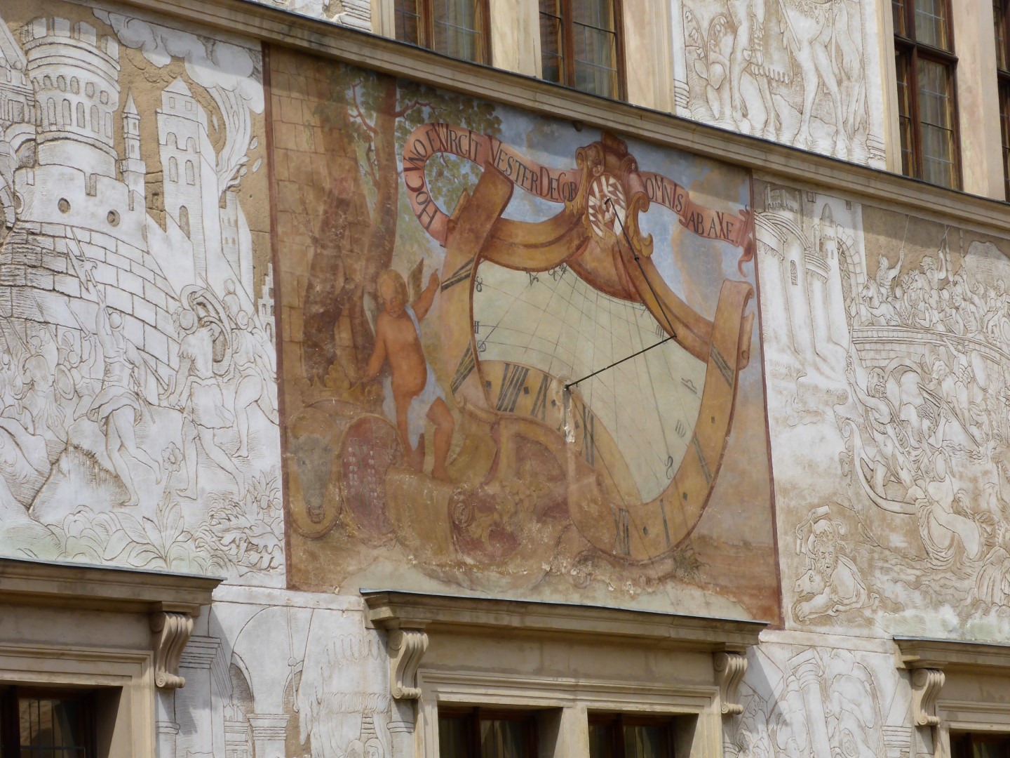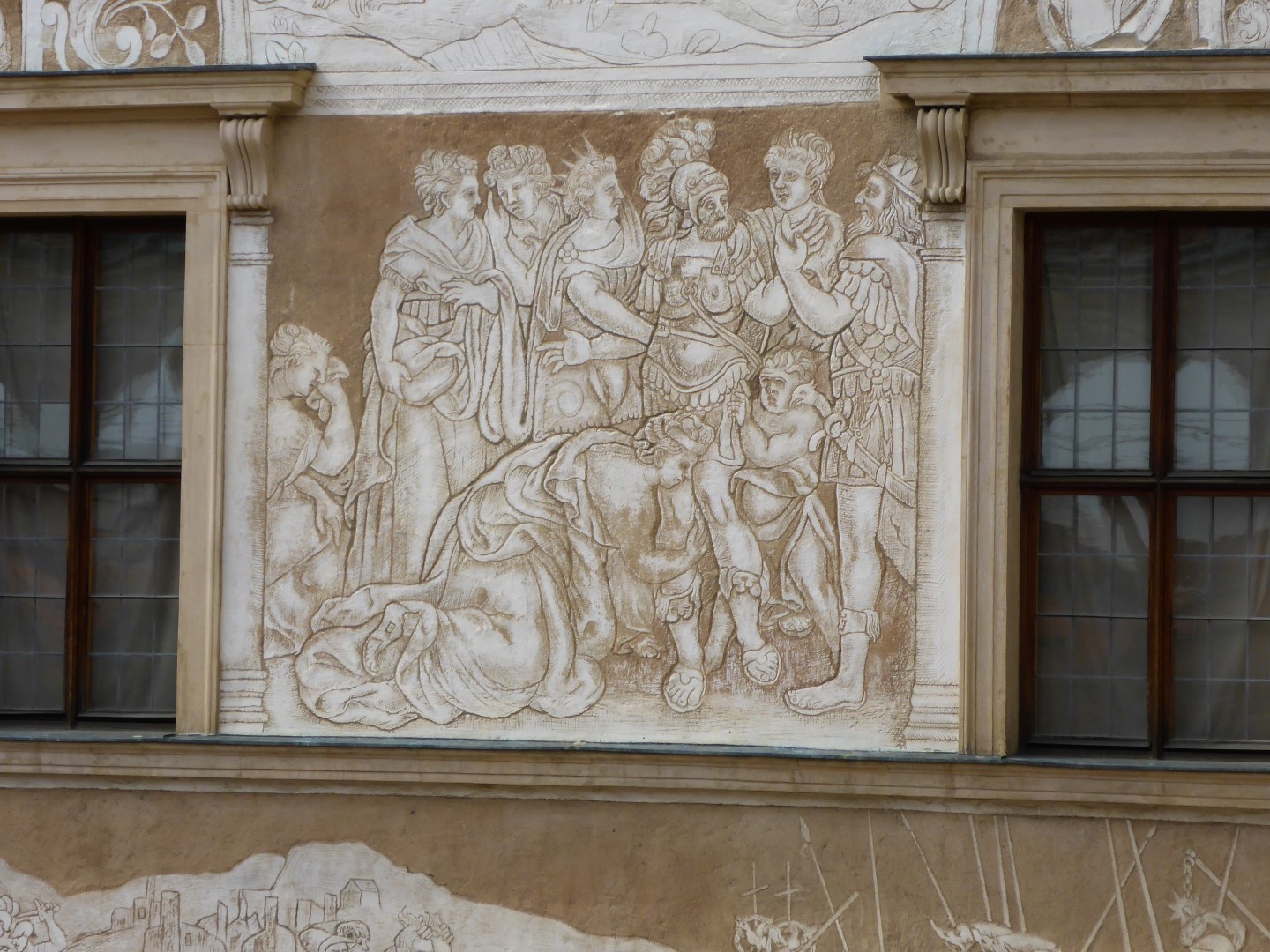 Back up on the hill I took a look inside the cathedral and it was clear that a major refurbishment project was under way. There wasn’t much to see there so I took a walk over to the castle. Built in the popular Renaissance style of chateau, it is set around an inner courtyard which is surrounded by porticoes and sgraffitoed facades. The upper floor has a balcony overlooking the courtyard. Some of the designs of the sgraffiti are based on religious scenes but most of them depict scenes from classic literature. They are stunning to look at and must have been the talk of the region when they were first revealed. The interior of the chateau was refurbished in the 18th century in the Baroque style.