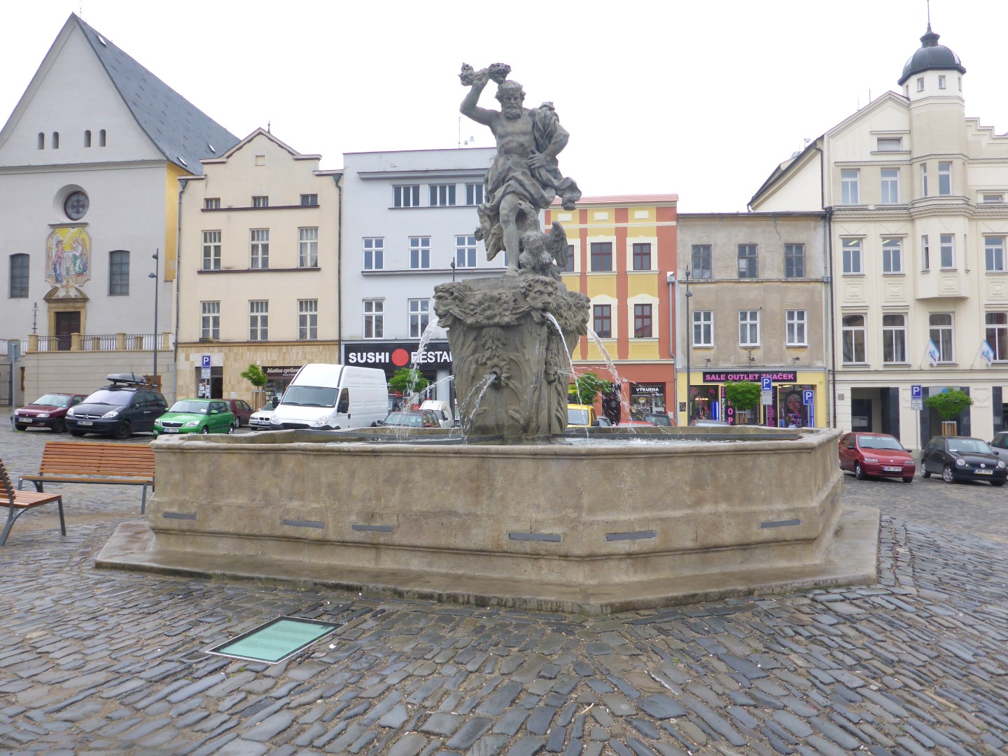 Litomysl is a very nice town, usefully bypassed by the main road so the wide, cobbled main street has plenty of parking and not much traffic. It’s fronted by buildings with an age range from the 15th century through to modern times. Many of them had arcade fronts which housed cafes as well as shops. The shops often had their goods displayed in the arcade and the main street had a relaxed and approachable air to it.