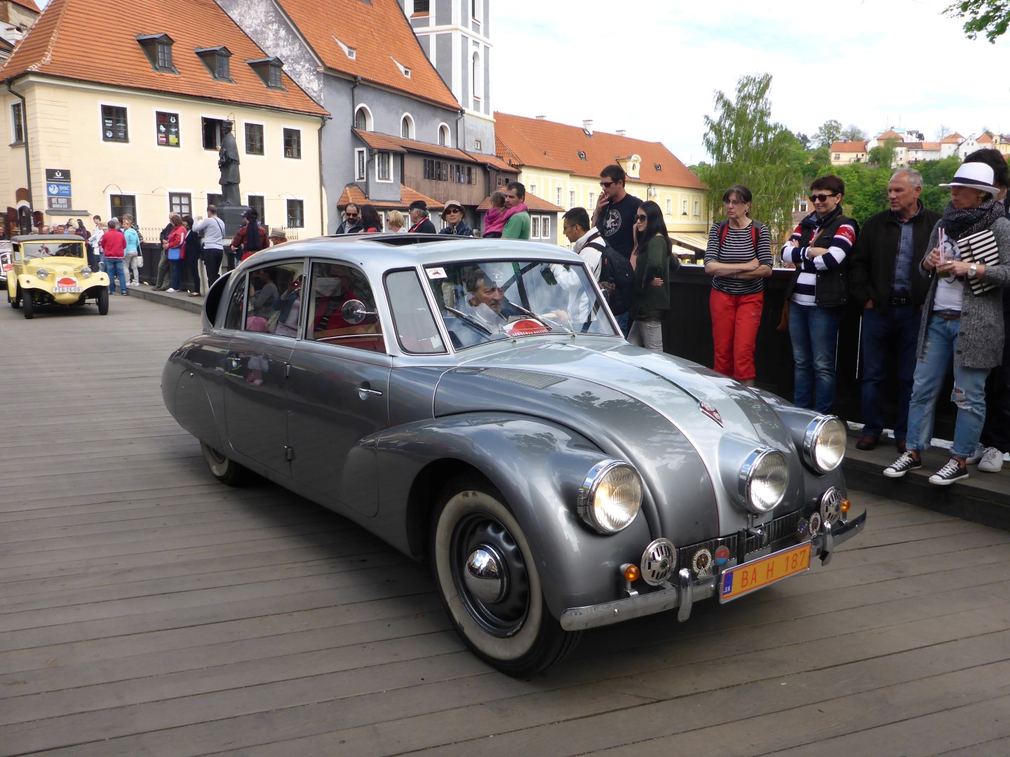 When I got back to the town square I found that a historic vehicle rally was passing through. There was a huge variety of bicycles, motorbikes and cars all rattling over the cobbles, all different ages from the 1900’s up to the 1960’s. Great to watch them bouncing past, very colourful and beautifully restored. Czech, British, French and American cars and motorbikes of all types and sizes. A great display.