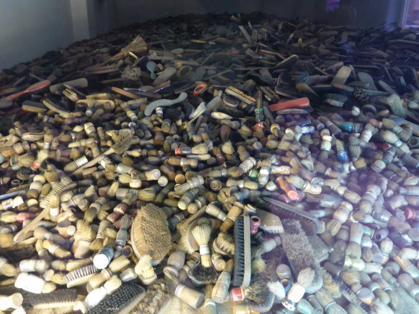 We toured around the various buildings and without any doubt the most distressing displays were those of the possessions of the murdered Jews piled up in the display cases, by far the worst being the hair shorn from their heads before being gassed. I was amazed to learn that many of these items were recycled back to the civilian population. Because German industry was on a total war footing it became harder and harder to get domestic items. So I suppose a clean and disinfected Jew’s cooking pot, pair of shoes or even toothbrush was better than none. I hope that the German population didn’t know where these items came from, but who knows? The SS guards would always keep boot polish for themselves.