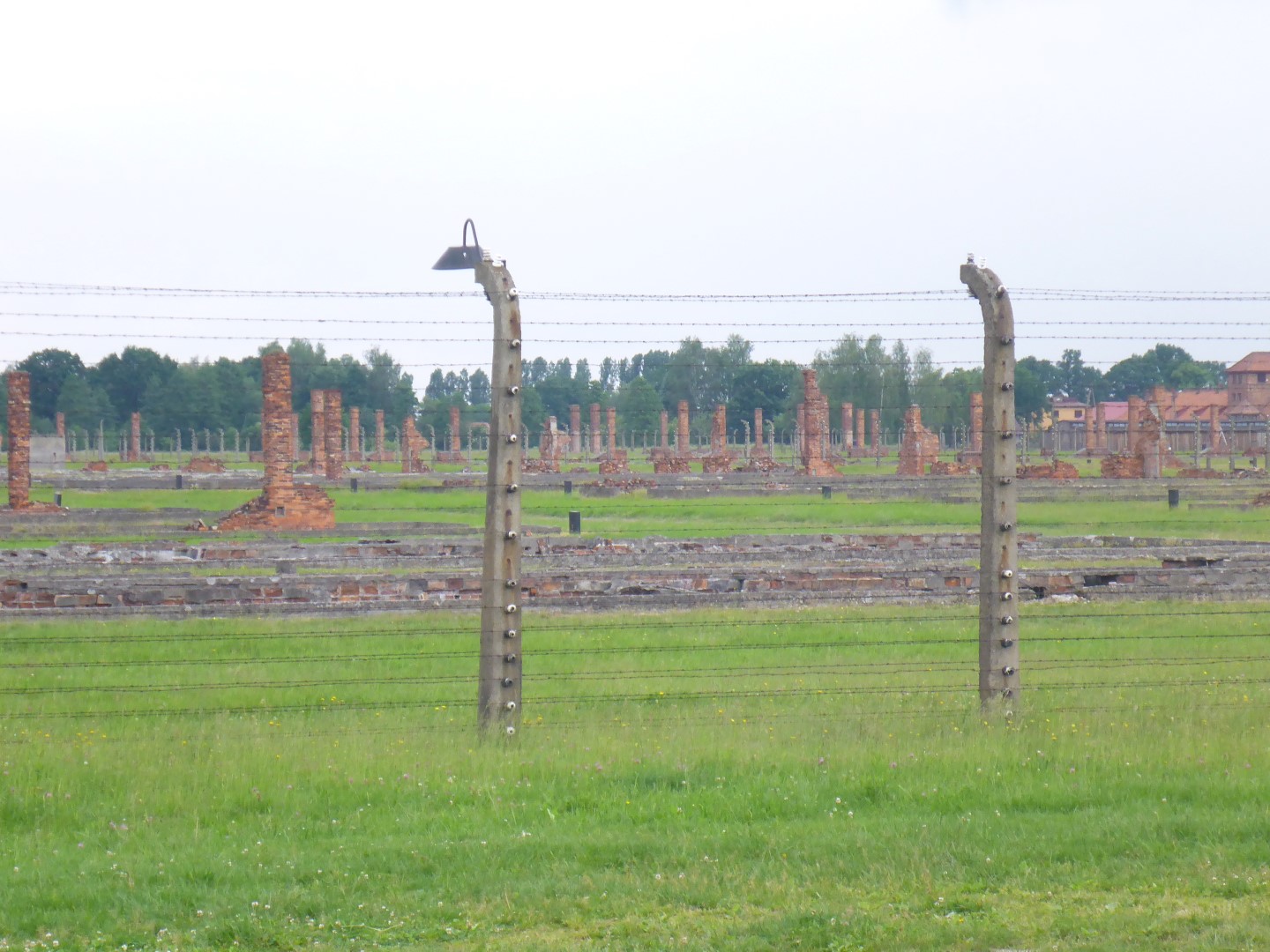 The thing that struck me most about Auschwitz II is the sheer size of it. It’s vast. There is a central road and the men’s and women’s accommodation buildings were on either side, stretching away into the distance. Almost none of the men’s buildings remain because, being made of wood and therefore easily transportable, they were sent to Warsaw and other cities to provide civilian housing. The war had destroyed almost all the housing. All that remains of the men’s blocks is the fireplace and chimney. Looking across the field all I could see was rows of these remains, standing there like sentinels guarding the memories of those who died there.
