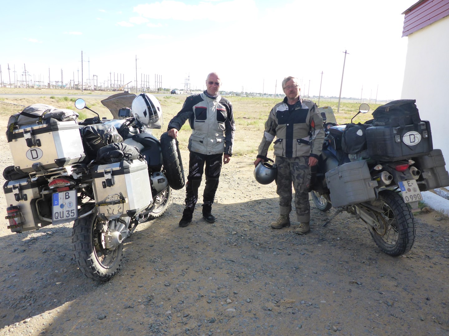 At the next town I came to the road just disappeared into a maze of dusty streets, something that often happened. Eventually I asked a couple of guys where the road out of town was and they pointed in a direction that seemed completely wrong. They insisted the road looped around so I took them at their word and found that at the edge of town the road just disappeared into the scrub land. Well, I came to Kazakhstan to follow the road less travelled and here it was, so I rode out, following the twin wheel tracks which, if nothing else, did at least go in the right direction. After a while the track began to run parallel to a raised embankment where roadworks were taking place, clearly the main road I sought. Soon after the track joined this nice new road and I was away. But not for long. The road deteriorated into the ‘Road Surface Formerly Known as Tarmac’ that I’d become so familiar with. And it stayed that way for the next 150kms. Poor old Doris! She took a real hammering. When Kazakh roads get like this drivers usually create an alternative track alongside of the road, sometimes one on each side. After about 100kms I decided to try one of these. I’d been reluctant up to now because of my ‘off’ earlier. Stopping for a drink I decided to check my luggage straps and found, to my heart sinking horror, that one of my bags and slipped out from the straps and fallen off the rear rack. The straps hadn’t been quite tight enough for this super rough road. When I’d put it on earlier I’d ignored my own rule of making sure the securing straps went through the webbing straps on this bag, which would have left it loose but still attached. My horror was because this bag contained my second passport, a significant amount of cash and all my bike documents. This was a disaster! There was nothing for it but to turn back and ride in my wheel tracks as much as possible, hoping to find it. I rode on the wrong side of the road in case it had fallen down the embankment. After about nine or ten kilometres a car coming towards me stopped and two guys got out and were waving my bag at me. It’s almost impossible to say how pleased I was and how grateful I was to these two young, helpful and honest Kazakhs. They had the sense to check it was actually mine by asking the name in the passport but I’m sure they knew it was anyway. I gave them some money to thank them, which they gladly took and had definitely earned. Kazakhstan is nominally a Muslim country and these guys looked the part, so I wasn’t so surprised at their honesty and anyway, it seemed to fit with my general impression of the people. The milk of human kindness flows deep in Kazakhstan!