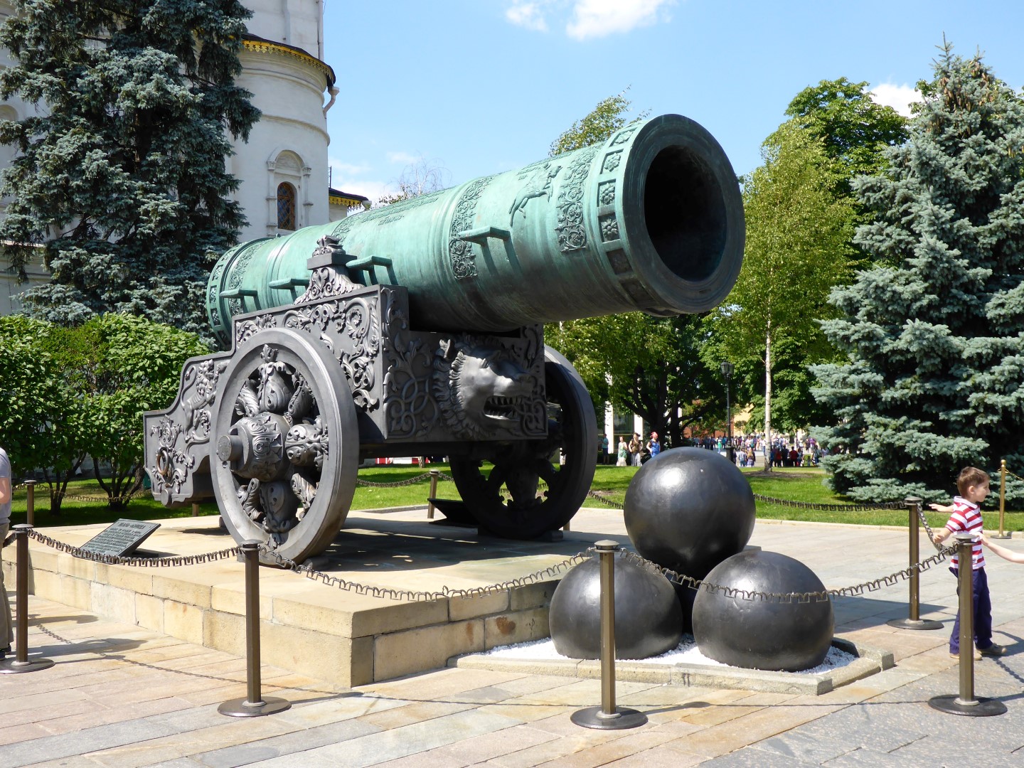 A stroll down to the Kremlin on this warm afternoon took me to the ticket office and I joined the queue. I bought one that would let me into the Kremlin, cathedrals and churches. There are museums in there too but I wasn’t particularly interested in their contents, mostly jewellery and similar, so I passed on them. When I got inside I was surprised to see how small the visiting area was. The complex is huge but visitors can only go to a small area where the cathedrals and museums are. I suppose it’s no surprise as the Kremlin does contains the parliamentary buildings and the presidential palace. The other thing I swiftly learned is that if you step off the approved walkways a guard will very quickly blow his whistle and wave his stick at you in a very meaningful way. Stray at your peril! There are three cathedrals to visit, The Assumption, The Annunciation and the Archangels. There are two churches also, the Twelve Apostles Church and the Church of Laying Our Lady’s Holy Robe. They aren’t all accessible and I went into two of the cathedrals for a look around. Typical Orthodox decoration and iconography, very decorative and some of it dating back tio the 17th century. Unfortunately photography wasn’t allowed. Outside lie two Tsarist relics, the Tsar Canon and the Tsar Bell. The cannon is huge and very nicely decorated. It was cast in 1586 and weighs in at forty tons. The bell was definitely overambitious. Six metres in diameter and the same in height, it weighs in at two hundred tons and that may be the reason why it broke before it ever rang. Because of casting problems a large chunk dropped out of it before it was even lifted so there it sits, the worlds largest bronze door stop.