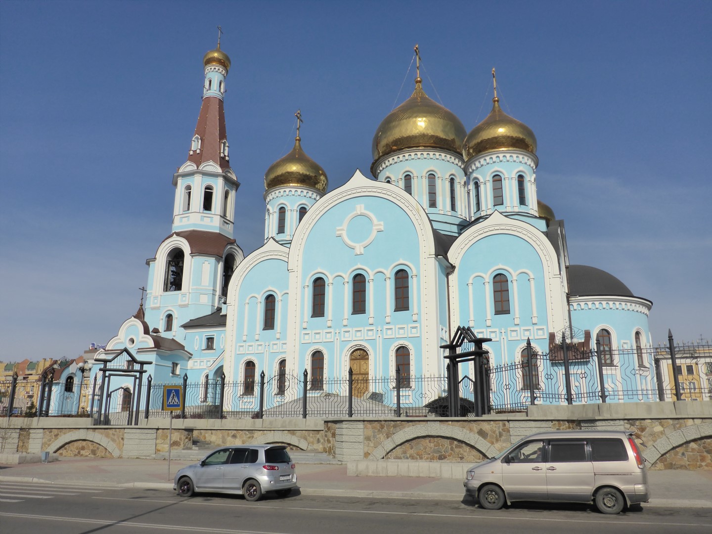 The landscape was pleasant enough although it was starting to lose most of its autumn prettiness. The rivers looked great, down in their valleys, carving their way through the landscape the way that rivers do. The road tended to run above them, which made for nice views to relieve the boredom. I didn’t pass through many villages or towns. The road seemed to have been constructed to avoid them. It was interesting to see that most of the buildings were made of wood, either board or logs. In fact I passed several places where I didn’t see a single brick building. It seems that simple old wood is the best material to resist the rigours of Siberian weather. A lunch stop at a roadside café helped me to do the same, where I enjoyed my favourite Russian dish of Borscht. A bit of a GPS glitch meant that when I arrived in Chita I ended up, quite literally, on the wrong side of the tracks. A bit of rethinking soon had me in the station square where I found City Central Hotel, the one I’d been aiming for. In the middle of the square was a huge Orthodox church and next to it was a secure car park. They were happy to take in my bike at the princely sum of just under £1 per night. Just the job. With a guard on site and a church next door it ought to be secure enough. After all, I had been good. The room in the hotel was one with four beds in it, so I could have been sharing with three others, but at about £12 per night, including breakfast and good wi-fi, I was very happy. I ended up on my own in there anyway so it worked out to be a very good deal. Just like a hostel room but without the bunks. A complete contrast to the place in Kyakhta, down near the Mongolian border. The breakfast was nice, the sun was shining and it was definitely warmer.