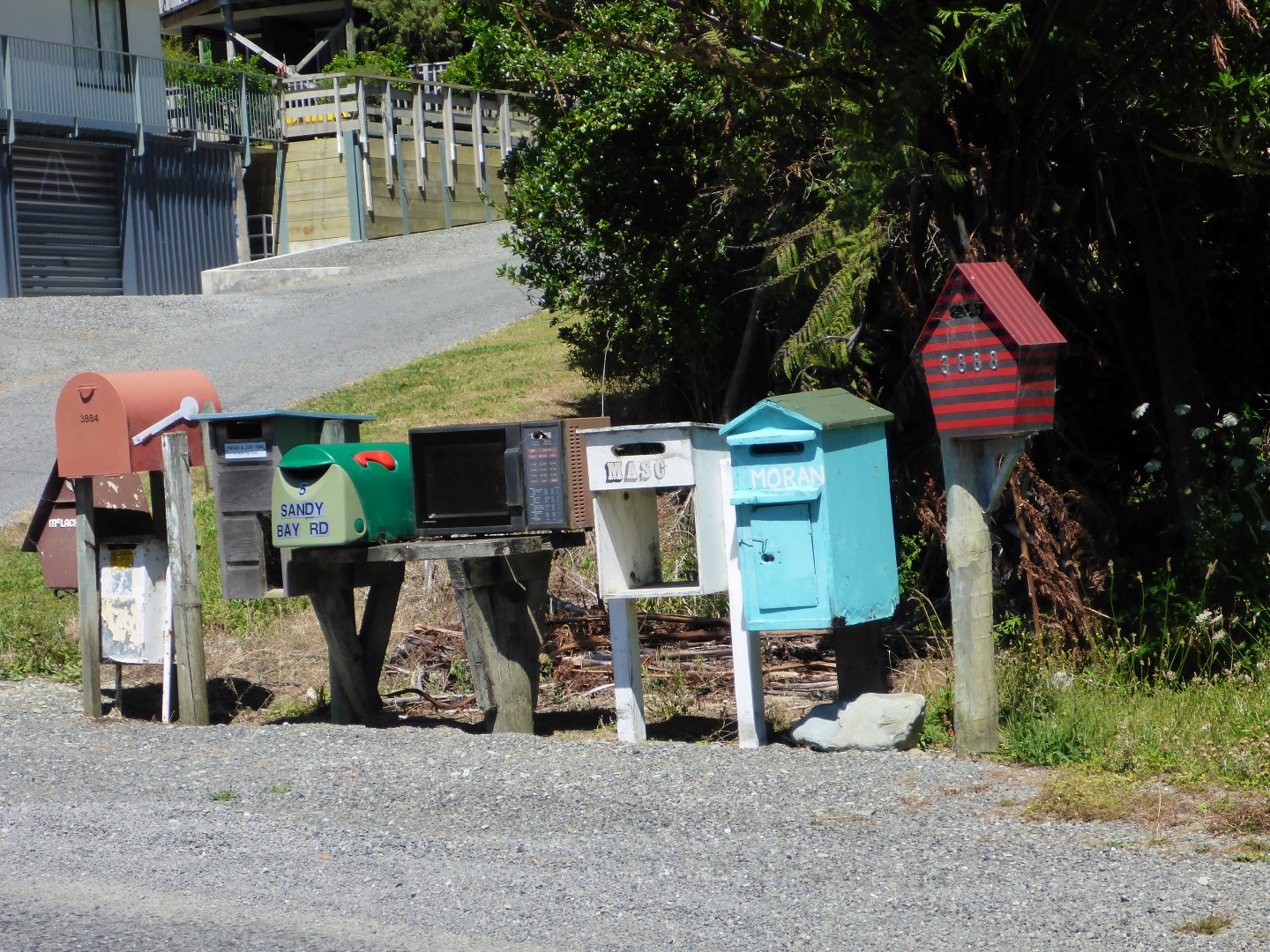 Lunch was eaten next to a beach in a bay, coffee was drunk in a hotel in a bay too. The ride back was amazing. Plenty of challenging bends and once I was back on the main road I was pushing the bike hard into the very tight bends and really getting ‘on it’. Probably the most fun I’d had on the bike so far. I loved the way that occupants of cars waved as I rode by and whenever I stopped to admire the view other people would chat to me and I to them. This kind of behaviour is infectious and it makes time spent out and about very enjoyable indeed. I was surprised to see how many houses and farms there were, even right out on the distant spits of land. A mixture of holiday homes – a Bach, pronounced Batch in NZ – farms and retirees living their dream. The remoteness didn’t seem to trouble them and one guy was pleased to tell me how the local village store, closed for the past three years, was about to reopen. Picton was an hour’s drive away so they needed it. Many of the properties were up quite long dirt tracks and it became common to see a small collection of mailboxes standing in a row where the track joined the road.