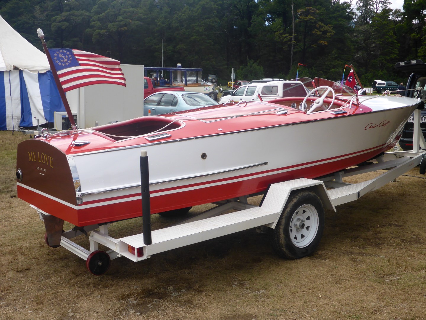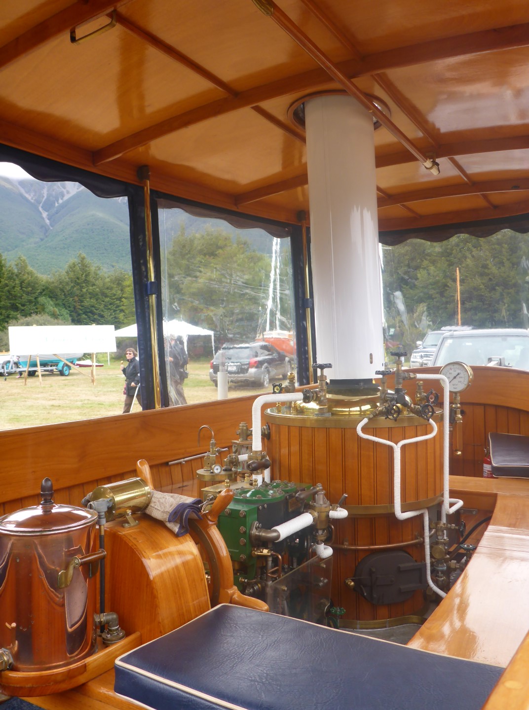 Next day was Sunday so we rode the bikes out to lake Rotoiti, a 90km ride up into the hills, where the annual Classic Boats weekend was taking place. There were various events underway out on the lake but our interest was captured by the various craft we could see on land. Nicest looking by far was a 1940’s Chris Craft, an iconic American speedboat, this one made from wood and immaculate in red and white. As someone remarked to me, you could imagine the Kennedys sitting in it. We saw steam powered boats, all shiny wood and polished brass and, at the opposite end of the development scale, jet powered boats too. There were a number of boats whose function was simply to go as fast as possible across the water during speed record attempts. They looked more like surfboards with big engines than proper boats.