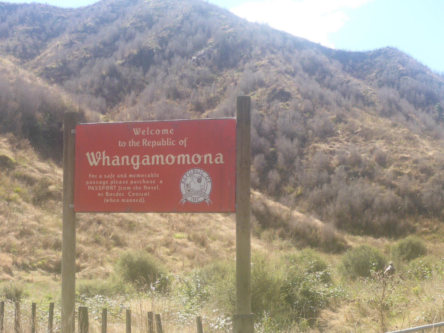 At this point the road was gravel and it passed through another of those hand dug tunnels, this one with rafters supporting the roof. The road was narrow and twisty and did indeed have an air of being lost. Towards the other end of the road I came to the village of Whangamomona, a small place with about ten wooden buildings along its main street. Bronwyn had told me about it. Following a dispute with local councils, the village declared itself to be an Independent Republic. Although the dispute has long since been settled it celebrates its status with a festival in January every second year.