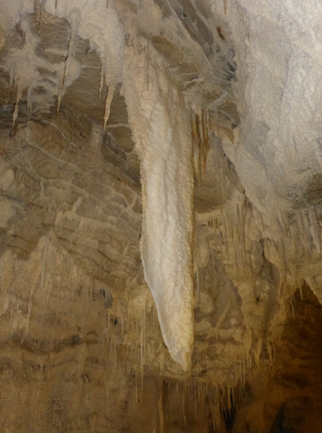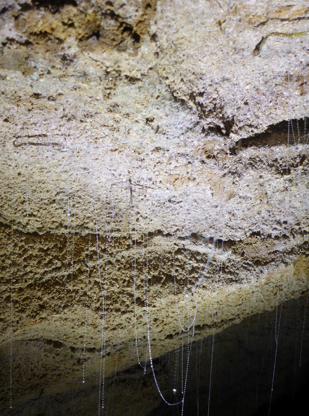 Waitomo Caves is famous for stalactites and glow worms. I’d seen plenty of stalactites/mites before although these were rather good, as was our young Swedish guide. She told us that over the years some land rights had been returned to the Maori tribes and the original entrance to these caves used to be within one of those areas. The new land owners declared the land to be sacred so the entrance was moved and the opportunity taken to create a fantastic circular ramp, with full wheelchair access, going down about fifty metres to the caves. All the paths are wheelchair accessible and they took us past plenty of fascinating limestone rock formations, as well as curtain type stalactites. Something I’d not seen before. Our guide told us that the water dripping off the end of them started its journey at the surface 18 months ago.