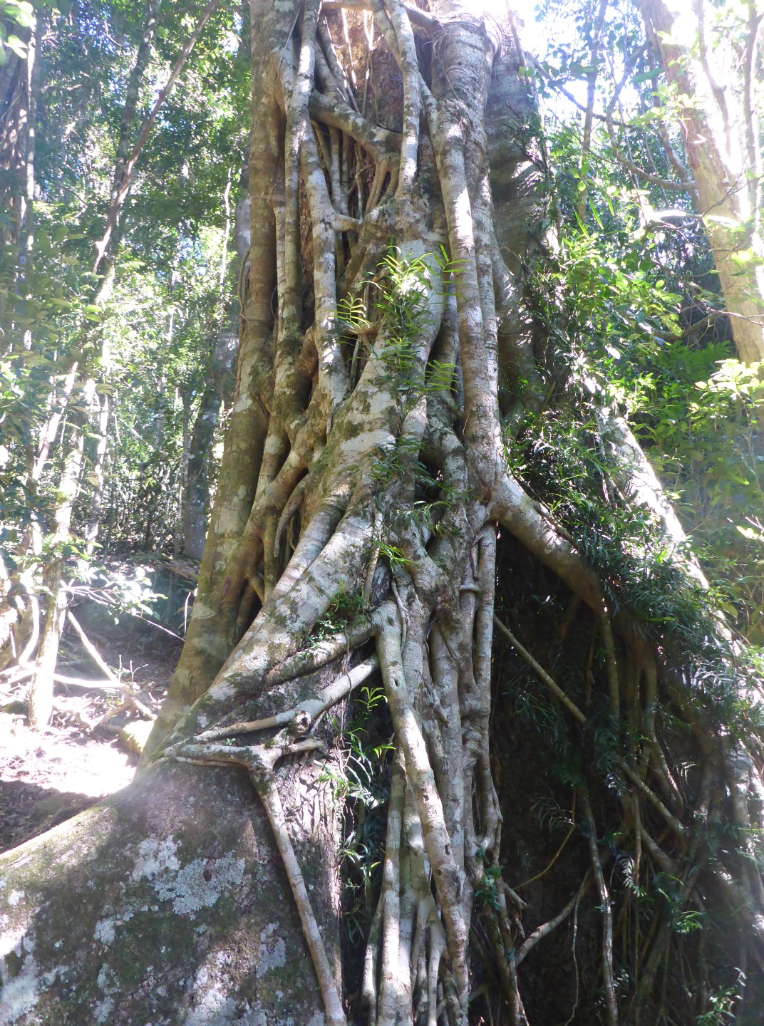 Phil and I went for a stroll along the forest track, checking out the giant fig trees, gum trees and various others. Creepers abound too and can actually strangle a living tree.Phil could name many of them and we learnt about others from the signs provided. One thing I was learning was that, like NZ, Australia likes to keep its national park visitors informed. A walk along a forest boardwalk proved fascinating and I was able to climb up a high ladder which led to a viewing platform, overlooking the forest canopy.