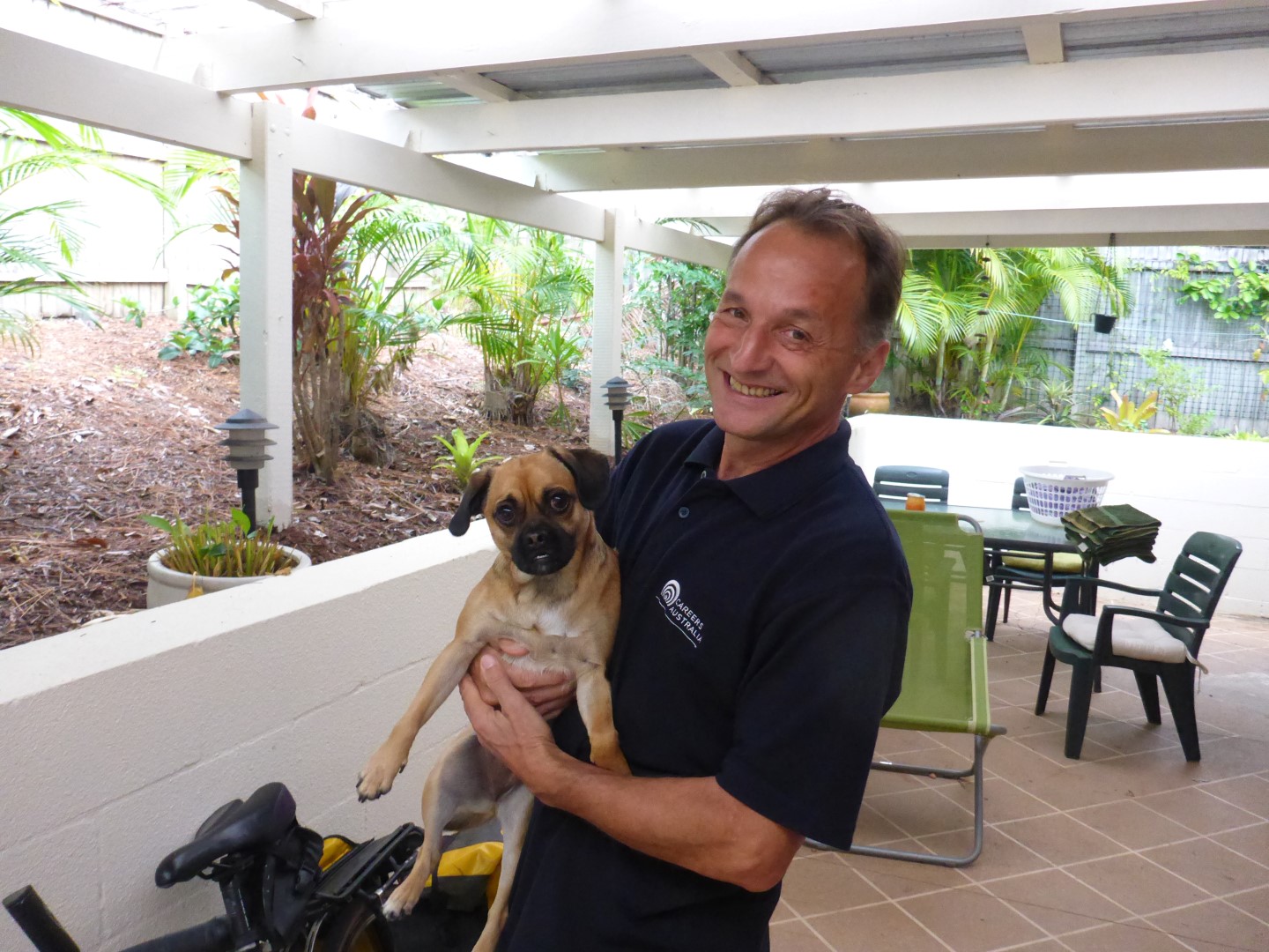 While in Brisbane I had made contact with Hans, the cyclist I’d met at the hostel in Vladivostok, and with whom I’d enjoyed the delights of the two day ferry crossing to Japan. He’d asked that I visit him when I got to Australia and as he only lives 80kms away, on the Gold Coast, I was happy to oblige. We were going to help each other out. He and Elisabeth, his wife, were going down to Melbourne for five days to see their son invested as a lawyer, and wondered if I’d look after their dog while they were away. I was more than happy to do this in return for a bed, food and enough peace and quiet to enable me to catch up an my blog and make some travel plans. A good deal as far as I was concerned. MoMo is a Jack Russell Terrier/Pug cross, only about eighteen months old. She is well trained and just needed feeding, walking and stroking. No big deal. For any cyclists among you, the blog that Hans wrote is well worth a read and, you’ll be pleased to hear, is nothing like as comprehensive (long) as mine! Find it here: http://tinyurl.com/qfspwgg