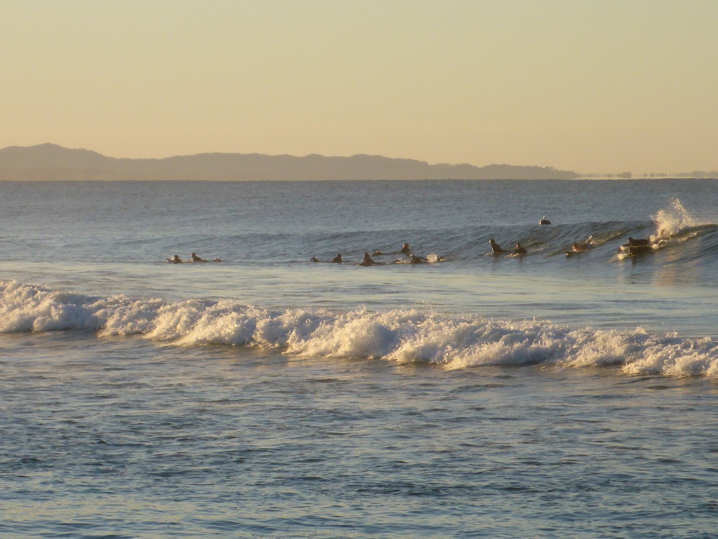 I rode into town for a look around. Similar to Nimbin, Byron Bay also had an alternative culture, back in the past, as a surfing destination. The surfers lifestyle held sway for a long time until popularity led to investment and it went the way of the money makers. Tourists visit for the beach life and sunshine, shopkeepers sell them overpriced goods, hoteliers rent them expensive rooms. And so it goes on and on. But the town still has a nice feel to it and I enjoyed a long walk up to the lighthouse on Cape Byron. Australia’s eastern most point is there too. A school of Dolphins were having fun down below, much to the delight of the kayakers out in the bay. Whales often pass through too, but not this time, sadly. The walk up there took me over a high ridge from where hang gliders throw themselves to their doom. It looked like fun and I was offered a tandem flight but I declined. I was only wearing shorts and T-shirt, flip-flops (Jandals, Thongs, depending where you come from), the walk back up from the beach didn’t appeal and the $145 price took the wind out of my sails. Instead I enjoyed the walk out to the lighthouse, engaged in conversation with some friendly youngsters out on a school trip, and drank a coffee. Much more my style.