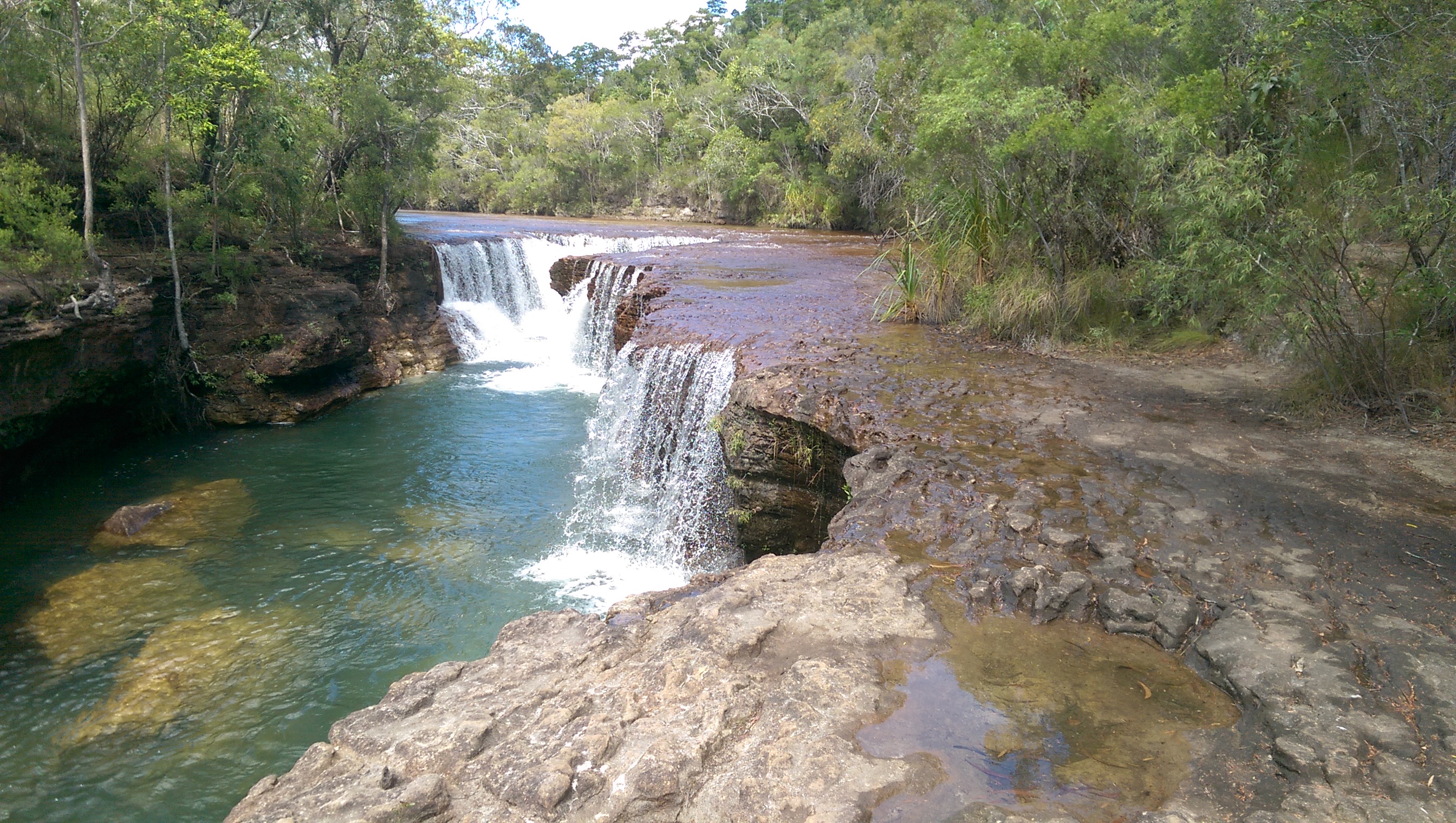 It gets light about 7am so I had a good look around and found no sign of any tracks or access. One thing the daylight did reveal was that this creek flowed from south to north. I knew that north would be best, having swum a fair way south already, so I about turned and swam downstream. The map in my head had Canal Creek running west to east and our campsite should be north and west of where I was. It was a shame I didn’t keep going upstream because, little did I know it, I would have come to Fruit Bat Falls, a place we’d visited a couple of days earlier, which definitely had public access.