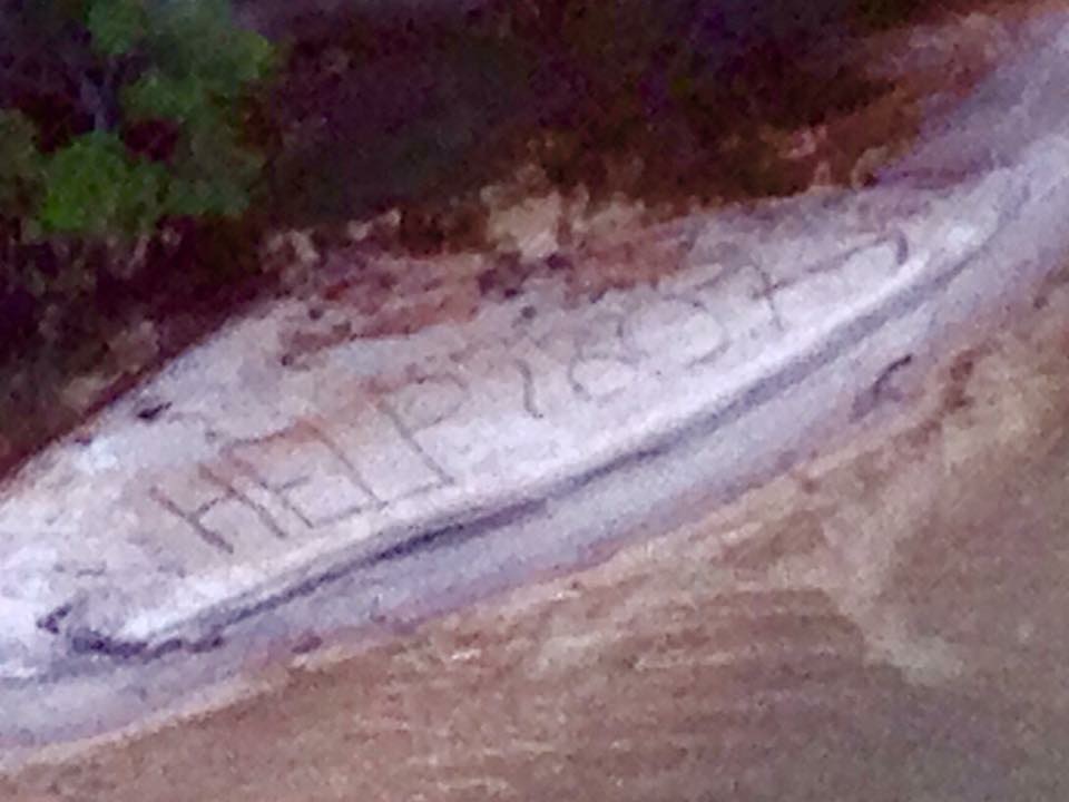 Around lunchtime I came to a sandbank and was in the process of swimming past it when I had a brainwave. It seemed a good idea to help myself as much as possible so I got out of the water, found a stick and wrote a message in the sand, just in case the helicopter came down that way. HELP. 2807. –>. Help, today’s date and my direction of travel. I thought this would be enough to get any helicopter that saw it looking in the right place.
