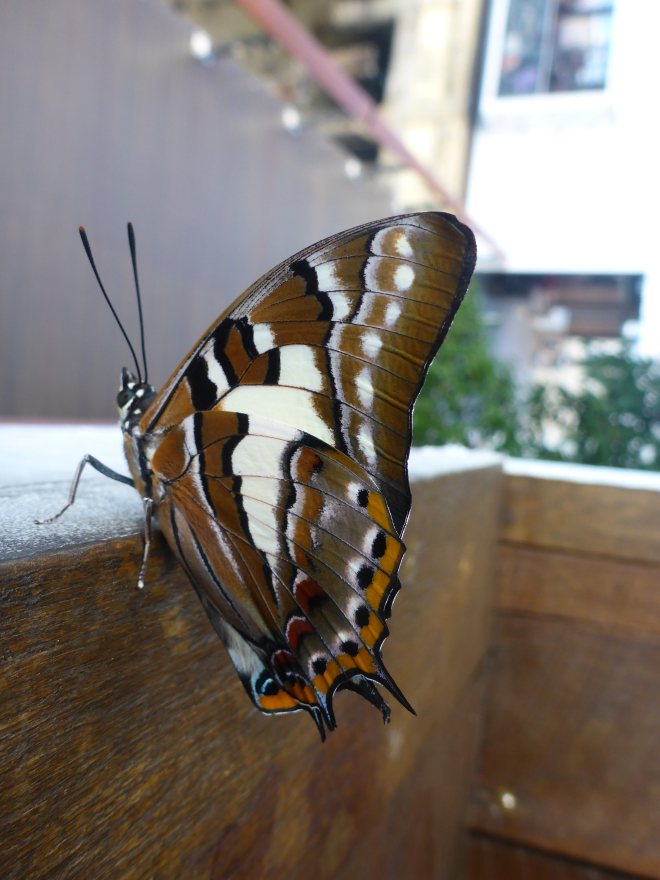 We took a slow cruise upstream, on the lookout for whatever wildlife there was to see. There were a couple of pelicans about; some very pretty, blues Ulysses Butterflies; a tree snake, almost impossible to see in its camouflage colours.