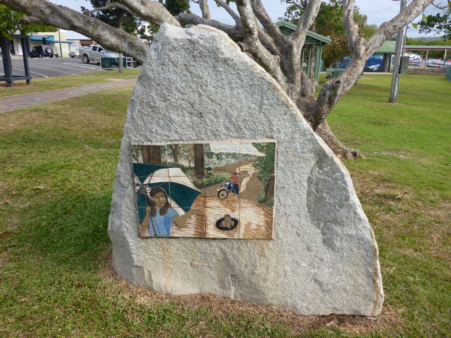 On the Wednesday I finally got out and about in the town and took a walk along the promenade and out to the marina. I took advantage of a ‘Coffee and Toasty, $7’ offer – far too good to pass by – and then enjoyed admiring the ‘rich boys toys’ moored up in expensive rows. The town had taken great efforts to make the waterfront an interesting place. There were several sites presenting Aboriginal stories and legends; a great sculpture reflecting another of their tales; some very interesting info boards describing the history of the harbour. Born out of of the need to transport mining and farm products, it slowly changed from wooden jetties with different owners to a town run business with modern wharfs and warehouses. Growing pains included labour disputes, as workers flexed their newly collectivised muscles in the early 20th century fight against deadly and unfair work practices, and the meeting the needs of WW2 shipping in the fight against Japan. Many of the themes are shared with other ports along Australia’s north east coast. A very interesting walk.