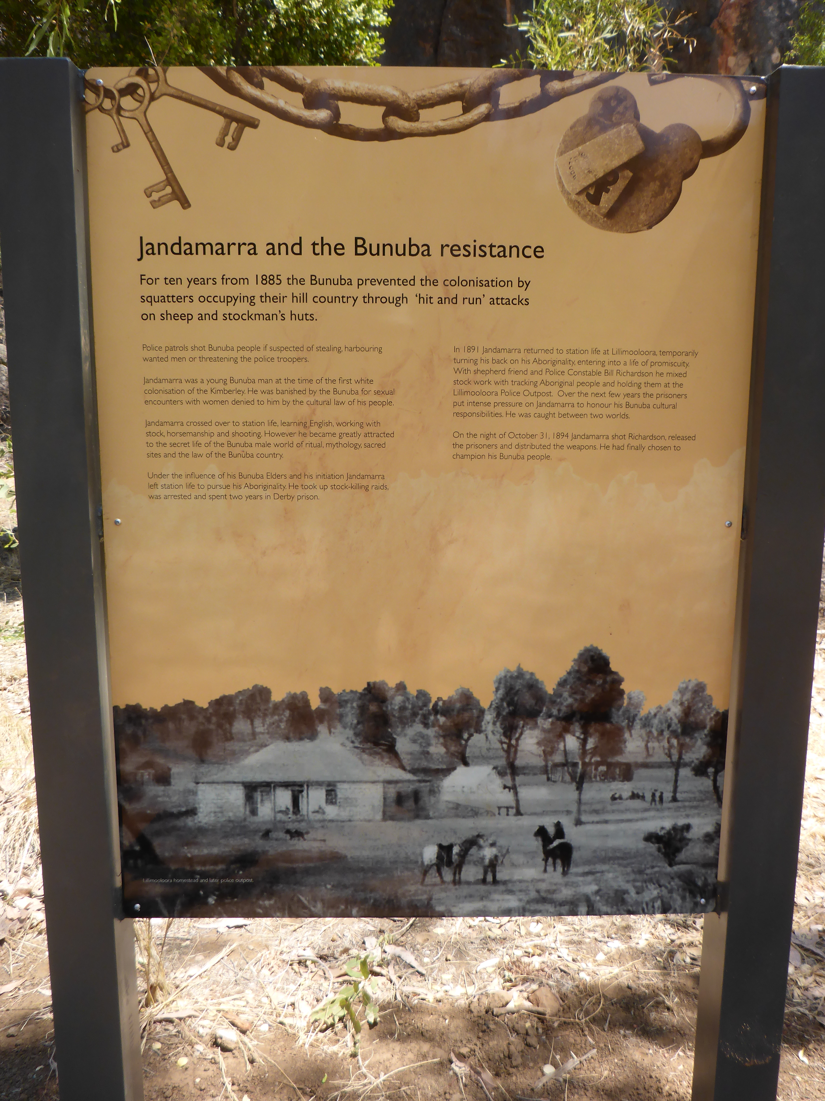 A really nice walk now completed, I went back to camp, packed away and headed off to my next destination of Tunnel Creek. On the way I called in to look at the ruins of Lilliloomorra police station. Its place in history was secured when one of the Aboriginal trackers, Jandamarra, ‘went native’ and shot his white colleague. Well worth a read. Follow the link.