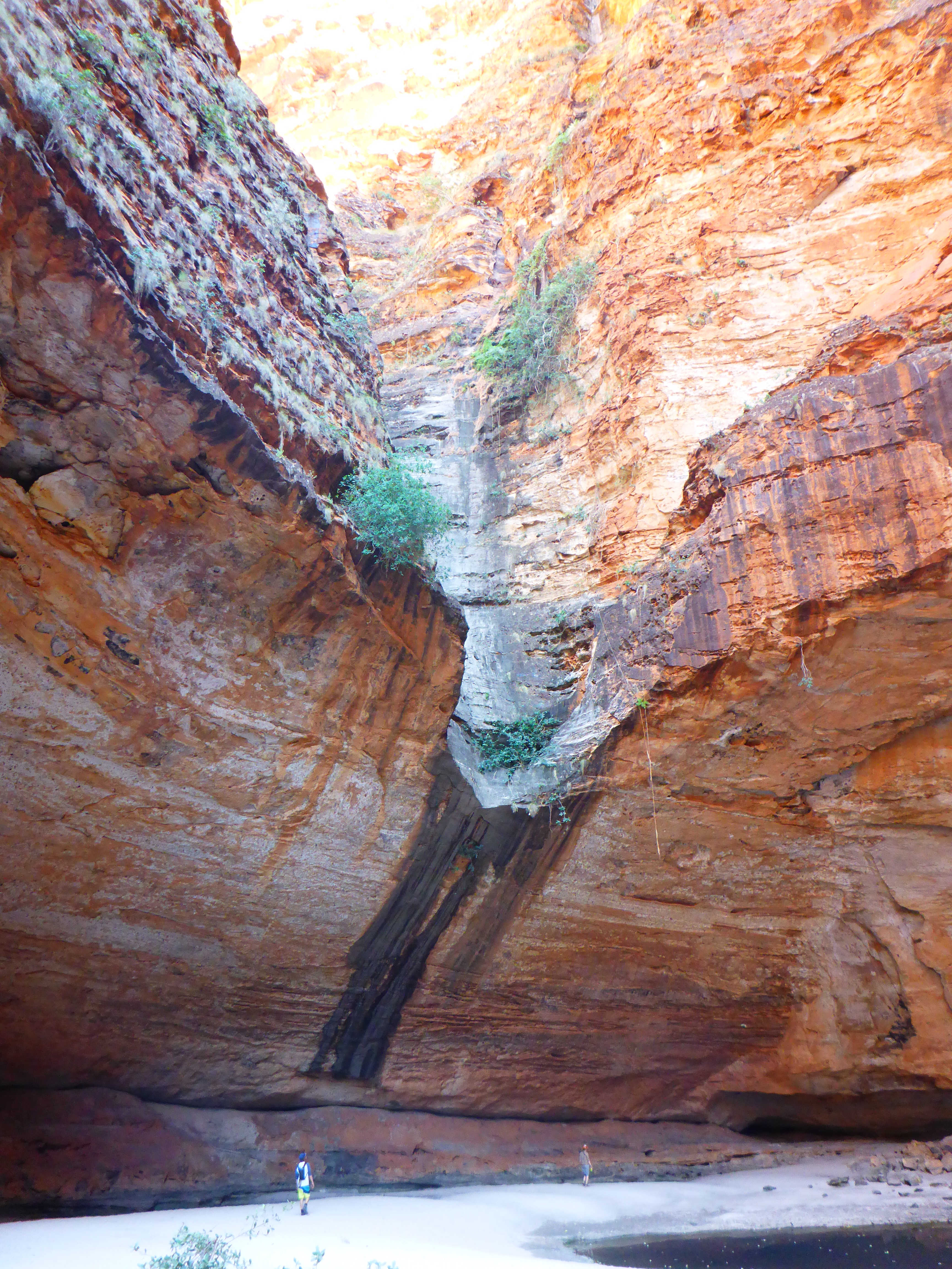 I also took a ride out to Wyndham, one of the two ports I mentioned. On the way up there I called in to look at The Grotto. This is a flat, rocky cliff top from where a waterfall drops down to fill, and flow out of, a permanent pool. It’s reckoned to be 300 feet deep and is a favourite swimming location. It’s a steep walk down but worth the effort. There’s a typical display of eroded sandstone rock, with fig trees and other plants clinging on to the near vertical cliff sides. Getting back up the 140 steps isn’t quite as much fun though.