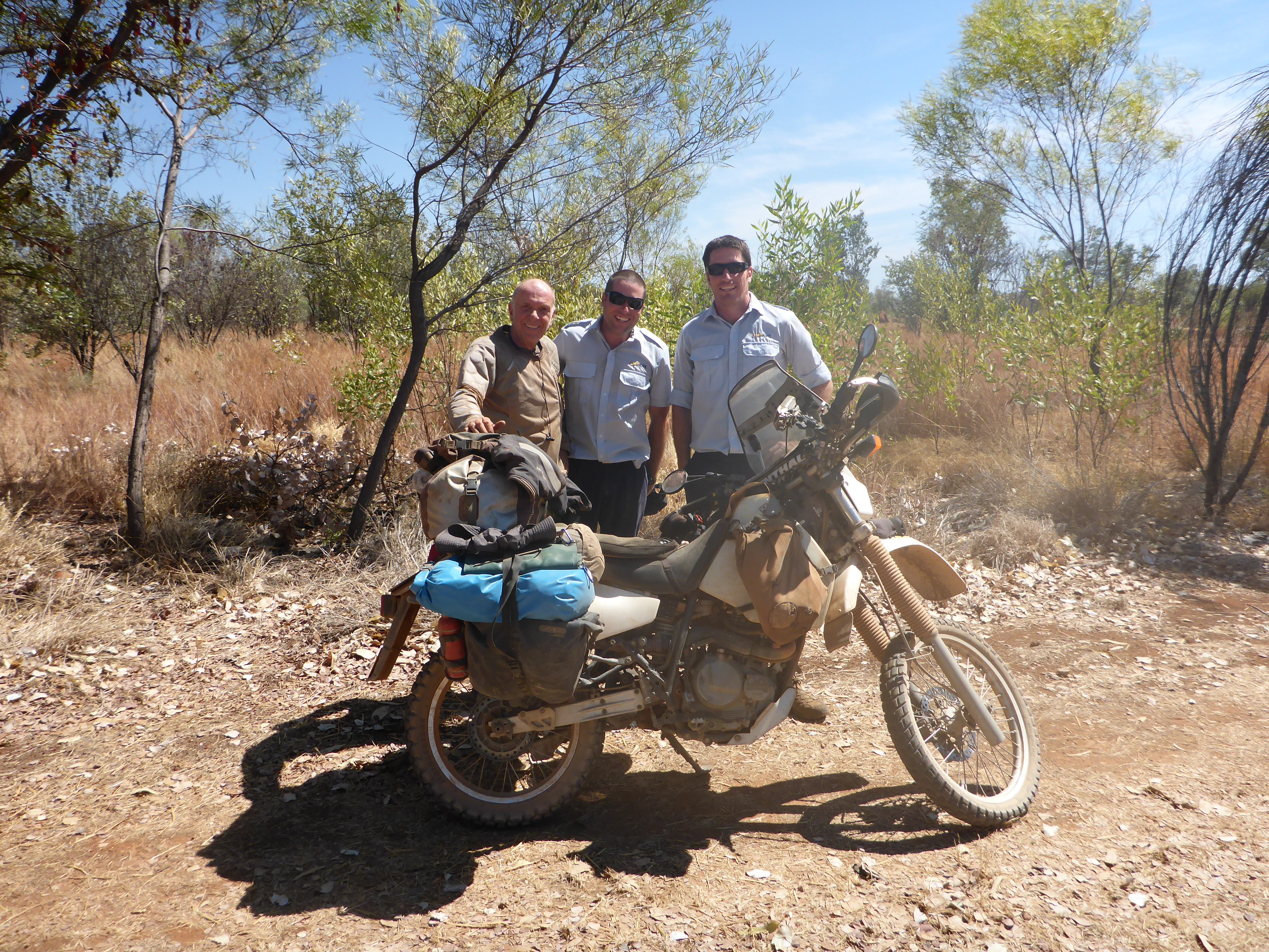 But the story continues. I’d had to put my spare five litres of fuel in the tank, enough to get me to the nearest Roadhouse, about 100kms away. But now I’d increased the total distance by 100kms and definitely didn’t have enough. What to do? A light bulb moment came my way. I’ll go down to the airstrip – only 6kms away – and see if any of the people there carry spare fuel. I rode down and Heath was behind the counter again, along with Nathan and a young woman whose name I didn’t get. I’d given Heath my blog details the day before because I knew he’d be interested in the rescue pilot’s account. So some surprise was expressed that I’d managed to find my way there. But nobody had any spare petrol. What to do? Well, I can’t say too much but they found a solution and filled me up with burnable fossil fuel, and after some photos and more chat, I was on my way. Unearned good Karma or me being a lucky SOB? By the time I finally got to the main road I’d ridden that track four times; crossed each creek four times; and I’d had a ball. I rode north, with a stop for fuel and coffee, and made it to Kununurra in plenty of time.