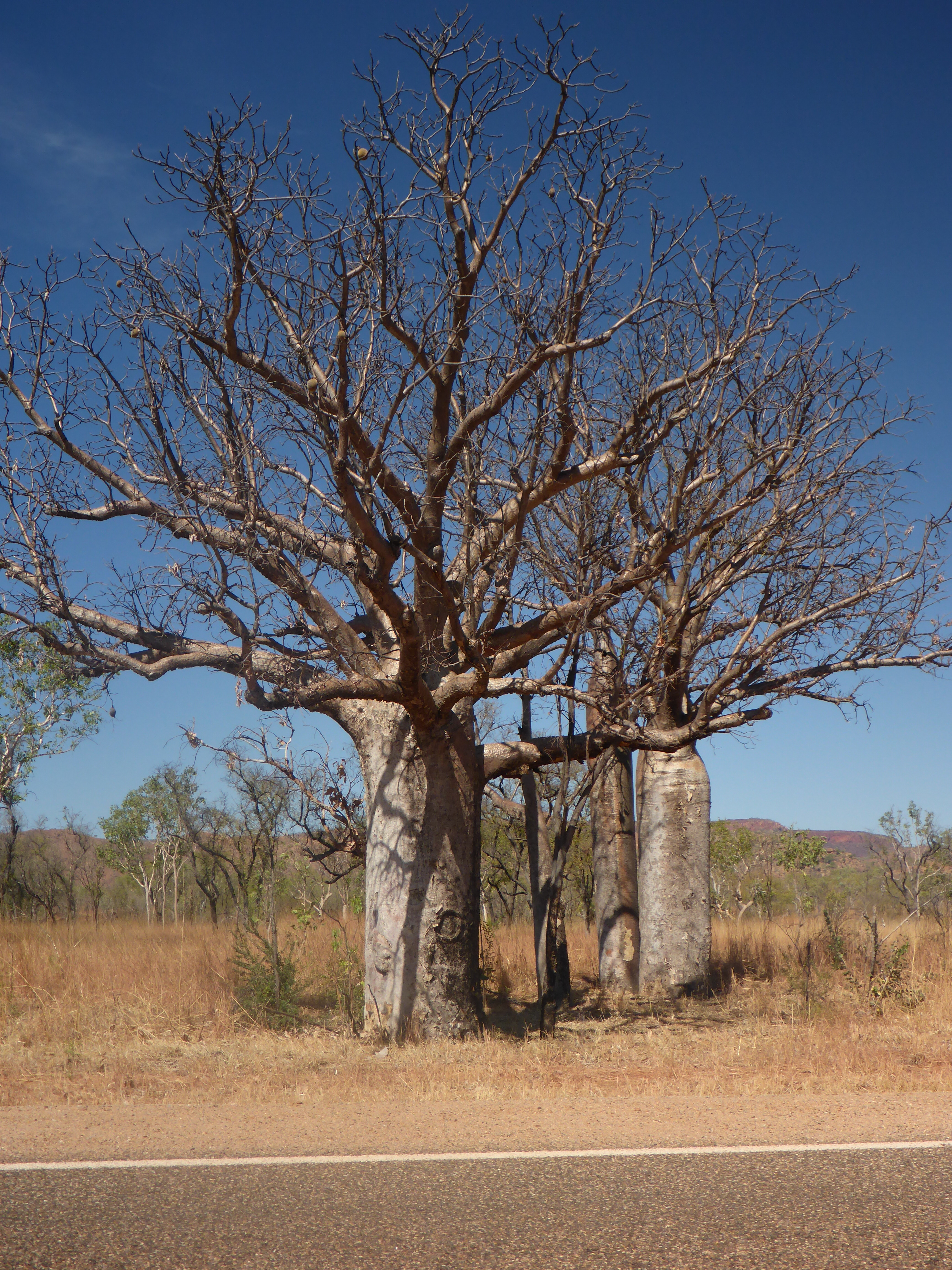 Three things happened on the way north. It got hotter. I could feel the heat increasing, even while riding. The sun was beating down on me and I was very glad I had plenty of water, albeit warm. I came across a cyclist, a young Japanese guy, who’d started his journey in Adelaide. I gave him some of my bottled water. He looked like he needed it. I began to see Boab Trees. These are only found in NW Australia and are a direct relative of the Baobab Tree, found in South Africa and Madagascar. It’s reckoned that seed pods floated over thousands of years ago and took hold. Some of the bigger trees are over one thousand years old.