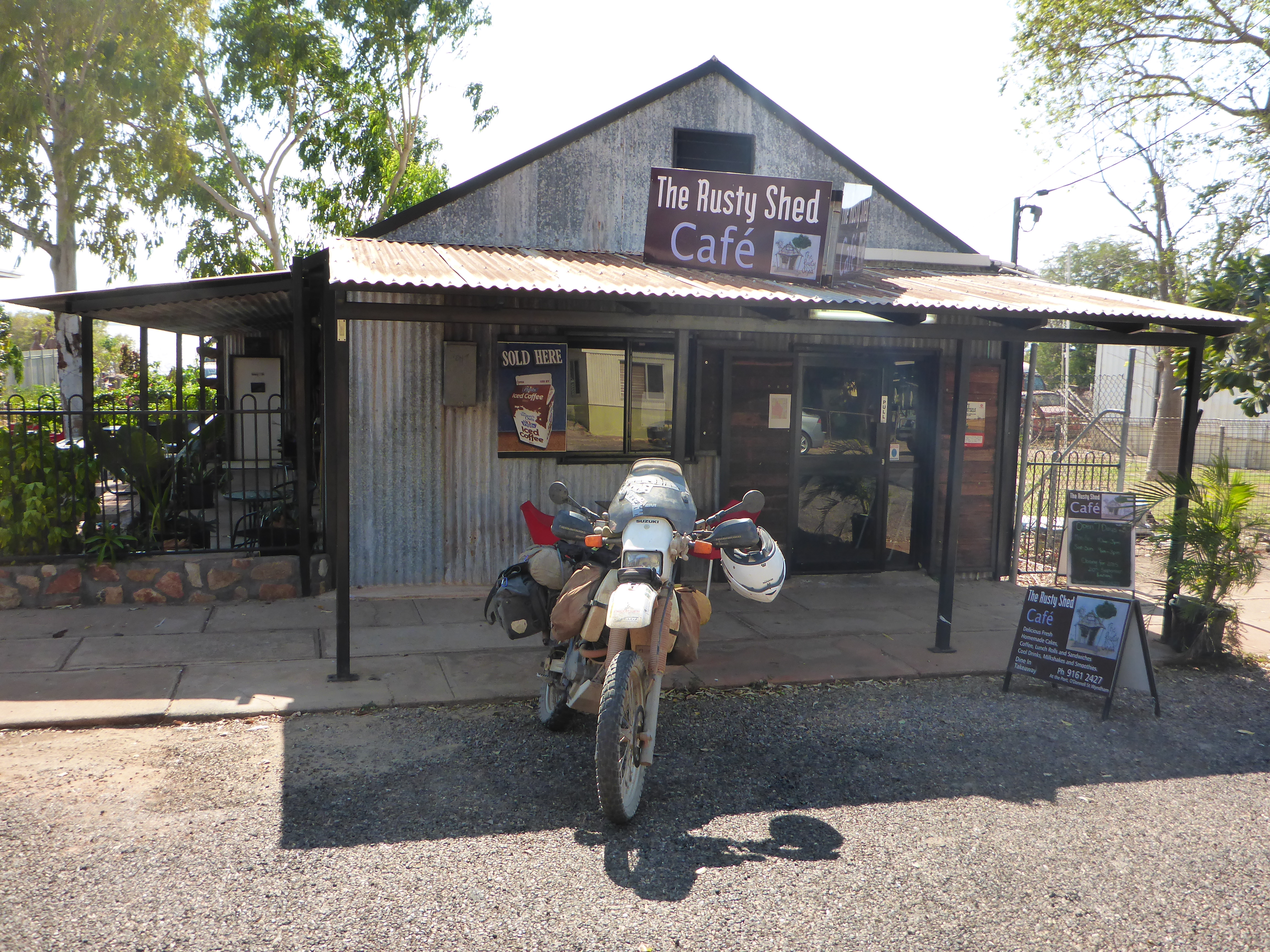 Nearby there is some good quality Aboriginal rock art. I’d seen some at Uluru and other places too. Mostly animals as far as I could tell. How old? I’ve no idea and I presume nobody has, given that there was no information to tell me. I’d guess they were for story telling purposes.Wyndham used to have a large meat works, now closed down. Cattle tend to be exported live now. I took a ride up to the Five Rivers Lookout, which offers a fantastic view over the sea, estuaries and shoreline. The tide was out so I could see the effect that an 8-10 metre tide has on the landscape. After a cup of coffee at the aptly named Rusty Shed Café, I headed back to Kununurra, feeling ready to move on now.
