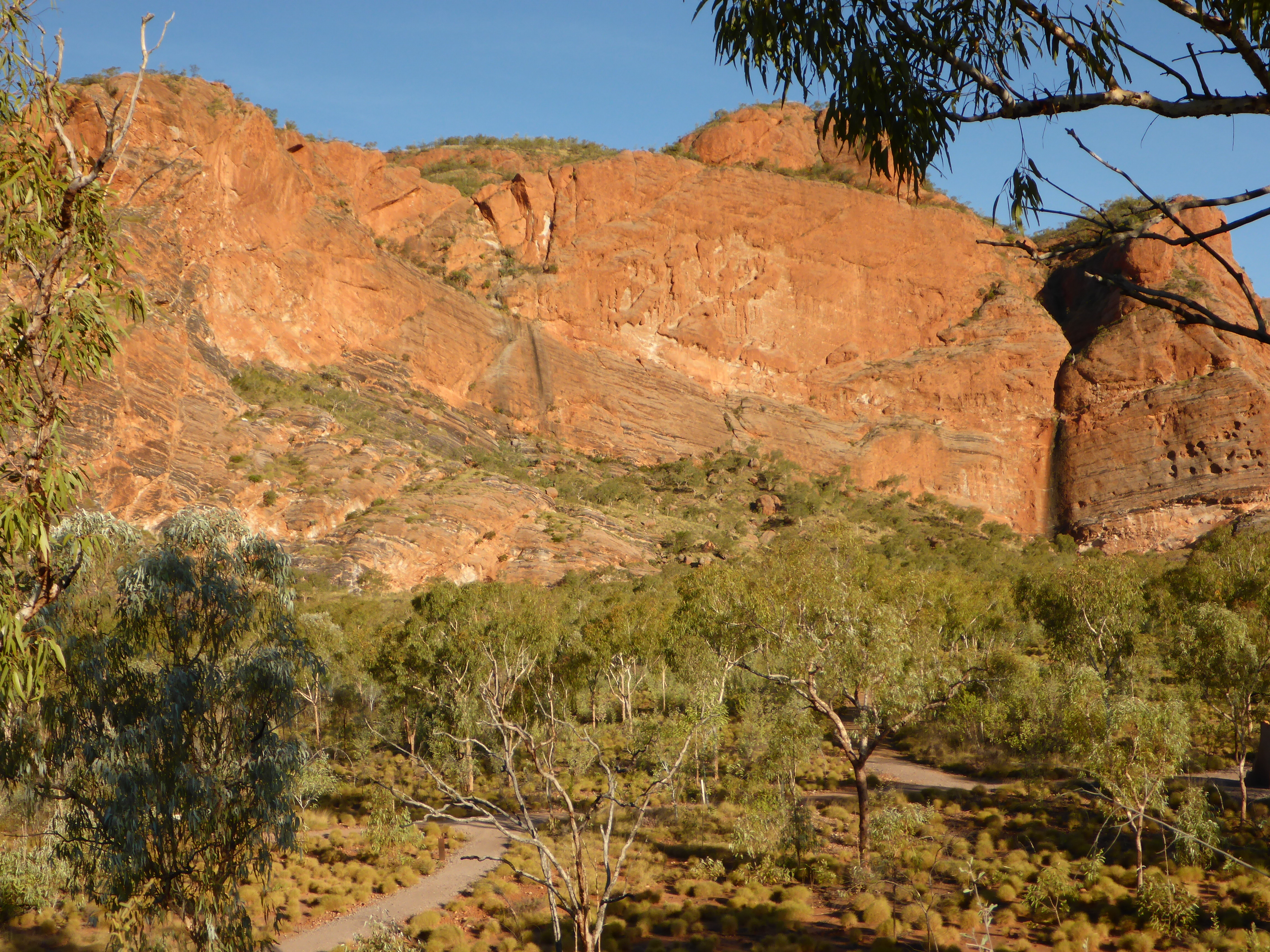 Next was Bloodwoods Lookout, at the end of a short walk from the car park. It over looks part of the escarpment which forms the northern wall of the Bungle Bungle Range. It’s a huge sandstone wall with woodland in front of it. Mighty impressive.