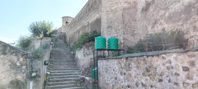 Imran had said he’d take me up to the fort but that we might need permission because it was being used as a quarantine centre. We went down to the Tourist Department and managed to see the deputy director of tourism. He was very helpful and rang somebody up to check we could go there. Then his assistant copied our ID because security at the fort would want it. He asked me how I liked the town and did I have any suggestions, so I gave him a couple. We managed to find the entrance, after a bit of driving around, and went up the steep track to the top. Lots of steps to get up to the gate, then quite a lot more inside. It was hard work!