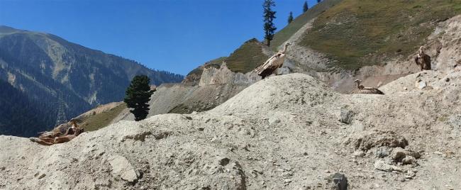 Peer-Ki-Gali turned out to be the top of a pass with a good viewpoint, a small mosque and, best of all, a café. As we all know, views always look better while enjoying chai and cake. I was intrigued to see vultures perched on the roadside barrier – a warning to take care! The other guys turned back, I carried on down into the valley. I got stopped at two army checkpoints. At one of them a soldier gave me some apples so I gave him half a bag of almonds. It seemed a fair exchange. It’s tempting to wonder how seriously the authorities regard all the information they take. The phone call I received later on confirmed they’re very serious. They’d taken the details of my visa but had looked at the old one. The phone call was to ask for a copy of the correct one, a photo of which I was happy to send. These guys are invariably friendly and relaxed, and keen to engage with a rare foreigner. But I never allowed that to get in the way of giving them all the co-operation they needed.