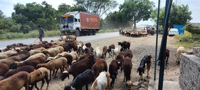 At one point I came across a sight that runderlined the variety peoples that populate India. Ahead of me I saw groups of about one hundred goats being herded along the side of the road. Nothing too unusual in that. But then among the goats I saw bullock carts being driven by people who were, by their looks, clearly different to the local people. The open carts were full of their belongings, including homeware such as bedding, kitchen utensils etc. Many of the younger guys favoured a hairstyle that was short all over apart from a small pigtail at the back of the head. It was clearly a migration of a herder clan, possibly taking their livestock to market or simply to better pastures. I’d loved to have known the full story, having seen a similar thing when up in Kashmir.