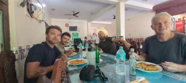 Nepal is a long and narrow country. I’d entered at the western end and would re-enter India at the eastern, diverting here and there as it pleased me. Highway 01 runs all the way across – the Nepalese “Mother Road”, essentially. My first diversion was to Bardya National Park, less than a day’s ride away, and home to various large animals. On the way there, and around about coffee time, I saw some touring bicycles parked outside a café. I pulled in and found three French guys travelling together and a Dutchman, who’d temporarily joined them. I sat down with them for a chat.