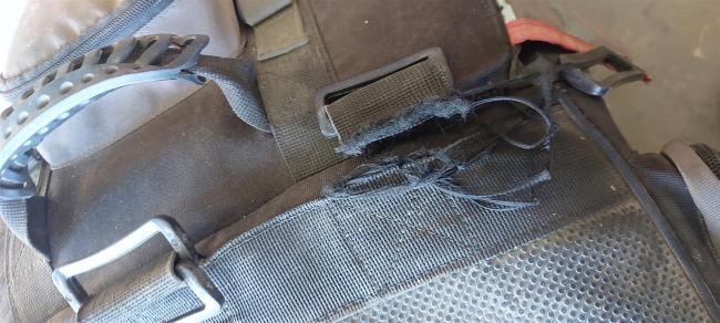 I’d planned to walk up to see the old monastery but when I got up next day I wasn’t feeling too great. I did go out for a walk but just couldn’t face the steep hill leading up to it. So I decided not to bother. Instead I spent my time wielding knife and cable ties to repair the strap that the rock/pannier interface had torn off.