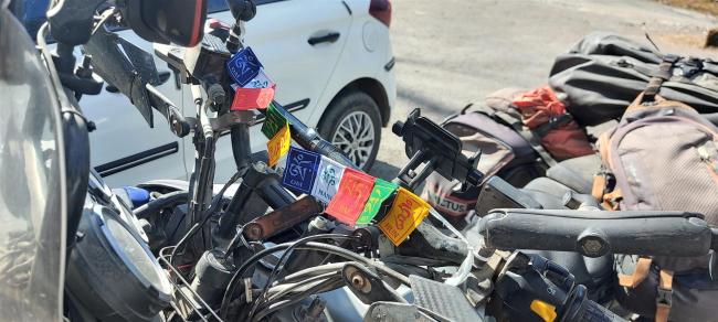 Soon after leaving the homestay I stopped at a viewpoint, looking out across a tea plantation. There was an array Buddhist flags there. A local guy started chatting to me so I asked him to explain the different colours to me. It goes like this: blue represents the sky; white for the clouds; red for the sun; green for plants; yellow for land. I’d seen lots of white flags along the side of the road as I rode around this area.