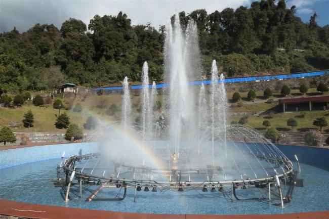 The park was beautifully laid out, with steps down to a central area where fountains sprayed their pretty patterns. There was a small Buddha statue in the middle of them and, whether by accident or design, the sunlight shining through the water spray created a rainbow arc right over it. It looked very spiritual, even to me.