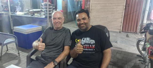 This whole area was busy with diners, hawkers and serving staff rushing around. It was already 10 p.m. and things looked to be just getting going. We chatted about my plans, with Malik giving me lots of safety advise for riding in Pak. He also said he’d work out a list of places to go and people to meet. Just what I needed.