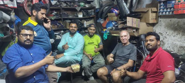 The location of this workshop was down a side alley. Going down it you suddenly come to an area of small, busy workshops, with bikes being worked on in the street (a dead end, fortunately) and each of them helping the other out. The alteration of the rack was undertaken by a small fabricators round the corner. I was worried that the securing straps were going to wear the paint on the side panels so Hafeez arranged for them to be covered in clear plastic, also carried out at a place nearby. Next to this business was a very well equipped workshop that reconditioned engine parts. Rebores, all sorts of bearing replacement and cylinder head repair. Anyone who owned a small Japanese bike in the 70s/80s/90s will be well aware of the carnage caused to the cylinder head if there wasn’t enough oil. This damage requires skilled repair and I was thinking how popular this business must be. The guy running the shop was very welcoming and made me feel a bit like royalty.