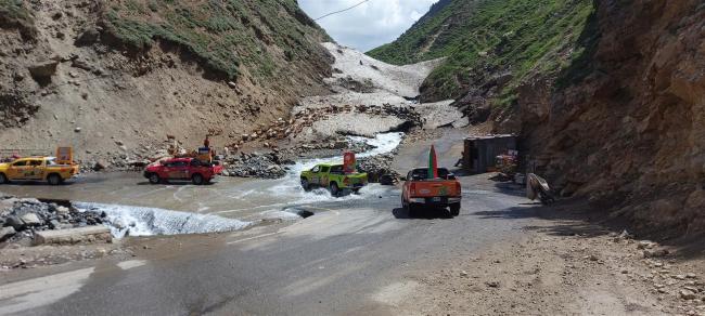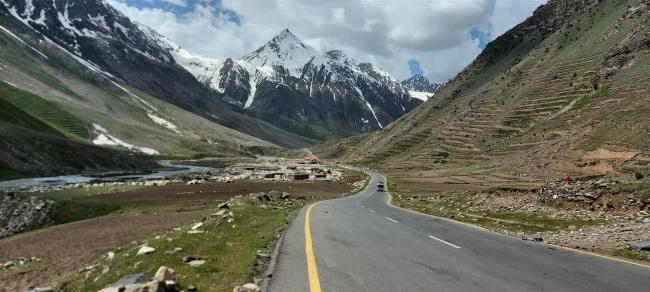 Heading south down the KKH out of Gilgit, then a left turn onto the road for Babusar Top, another high mountain pass, up at almost 4,200 metres. The road going up there was good but busy. It was a nice ride until I felt my front tyre going flat again.