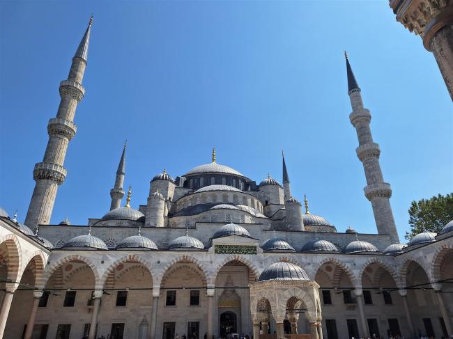 My first target was the Blue Mosque, more correctly called Sultanhamet Mosque, and one of the city’s star attractions. And that’s no surprise because it really is magnificent. Very big, as befitting a capital city’s main religious building. There were large circular columns supporting a beautifully decorated roof, with one main, central dome and four others at each corner. The columns are also decorated on their top half. The windows have blue stained glass in them, giving the mosque its more common name. It was built in the early 17th century and at that time Istanbul was the Ottoman Empire’s capital city under the name of Constantinople.I do enjoy looking at religious buildings and this one was quite special.