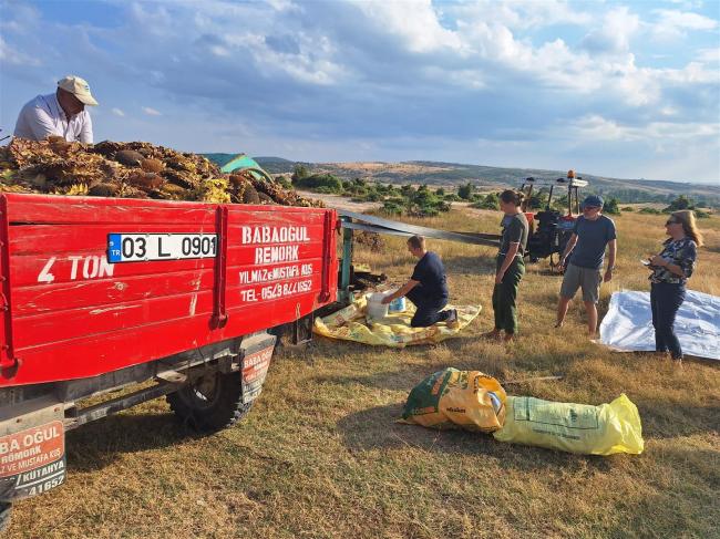 We got chatting to a young German couple who were also staying there. Later on the father of the guy who ran the site invited us down to watch him harvest seeds from sunflowers. A bit of a random activity but it turned out to be very interesting. There was a trailer full of sunflower heads which were thrown into a kind of threshing machine. It shook the flowers enough to separate the seeds out. They dropped onto a plastic sheet and were spread out to dry. The flower heads were shovelled into another trailer and were taken down into the village. There, we watched as some cows were milked while being fed the flower heads. Sunflowers are clearly a good cash crop, with several different uses.