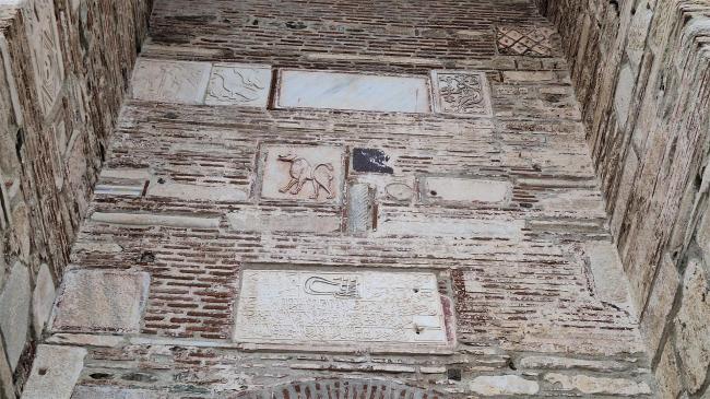 Not much of the old interior remains in any discernible way. I had a look around the old prison buildings, just because I could. More interesting was the gatehouse, with all sorts of symbols and inscriptions on the outside wall above the gate. I think they reflected the change of rulers and occupants over the ages. The external walls alongside incorporated old bits of marble, from decorations, as filler. Very odd.