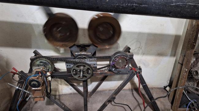 But better than that was his experimental perpetual motion machine. It worked by using a small electric motor to get a pair of counter-rotating weights swinging which, once they’d gained enough momentum, kept moving backwards and forwards, driving a shaft. The electric motor was powered by a battery which itself was recharged by a generator turned by the machine. Anyone with knowledge of physics will tell you there’s no such thing as perpetual motion, but the machine I was looking at seemed to have got pretty damn close to it.