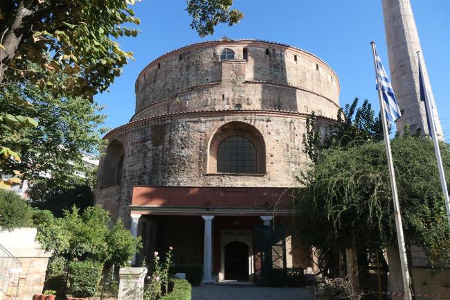 The Rotunda is a building that was a Roman temple to a god or emperor. It had then become the city’s main Christian church during the Byzantine era. The Ottomans had converted it into a mosque but had left most of the Christian era decorative mosaics intact. The building was very high and had a huge floor area. The mosaic figures stared down at me from high up in the dome.