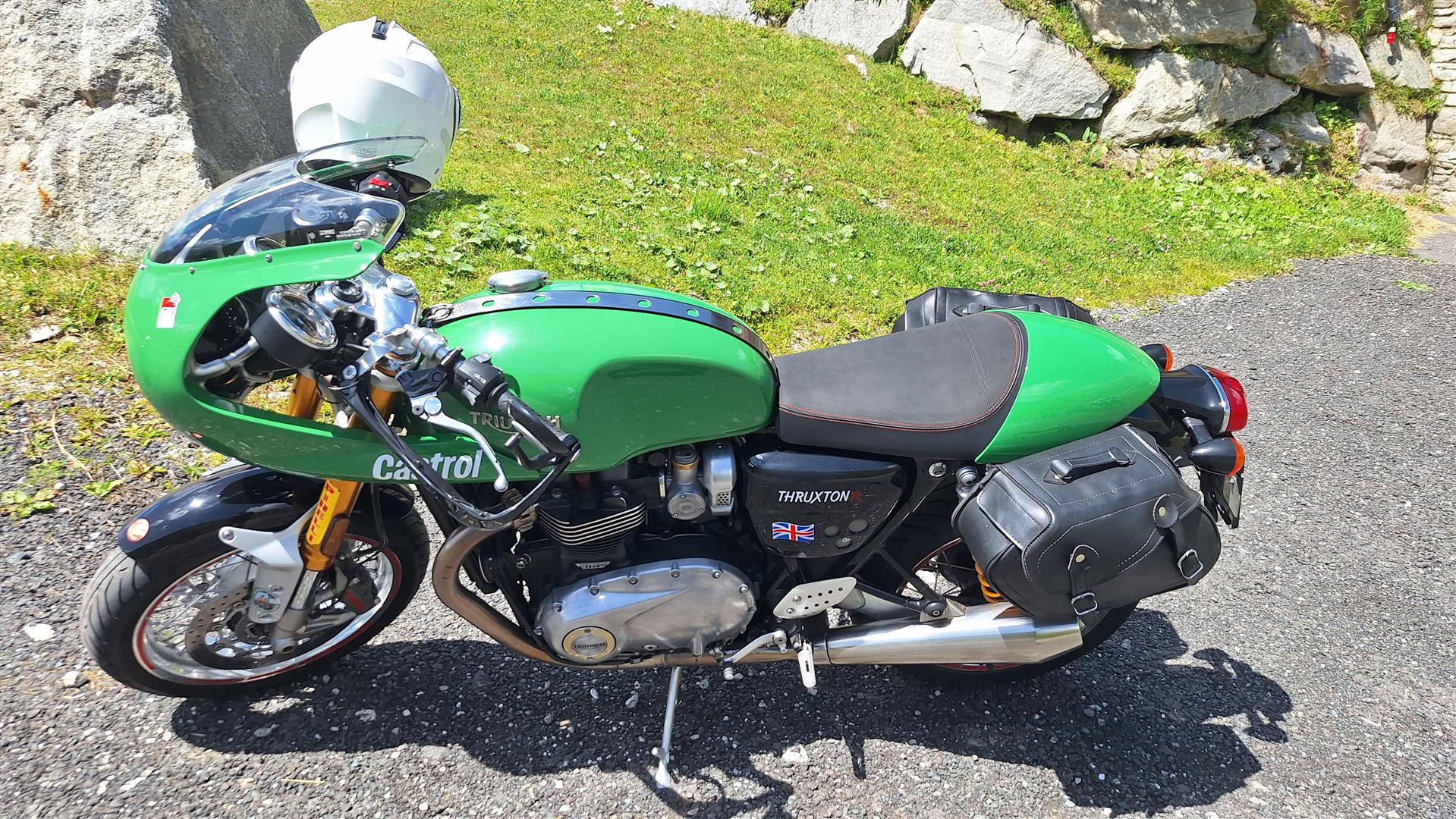 We had lunch at the top and I was admiring a modern Triumph Thruxton which had been retro styled to look like an old one. Clip-ons and a Castrol green half fairing made it look the part. The road was a dead end so we went back down and rode to Nockalm Biodiversity Park.