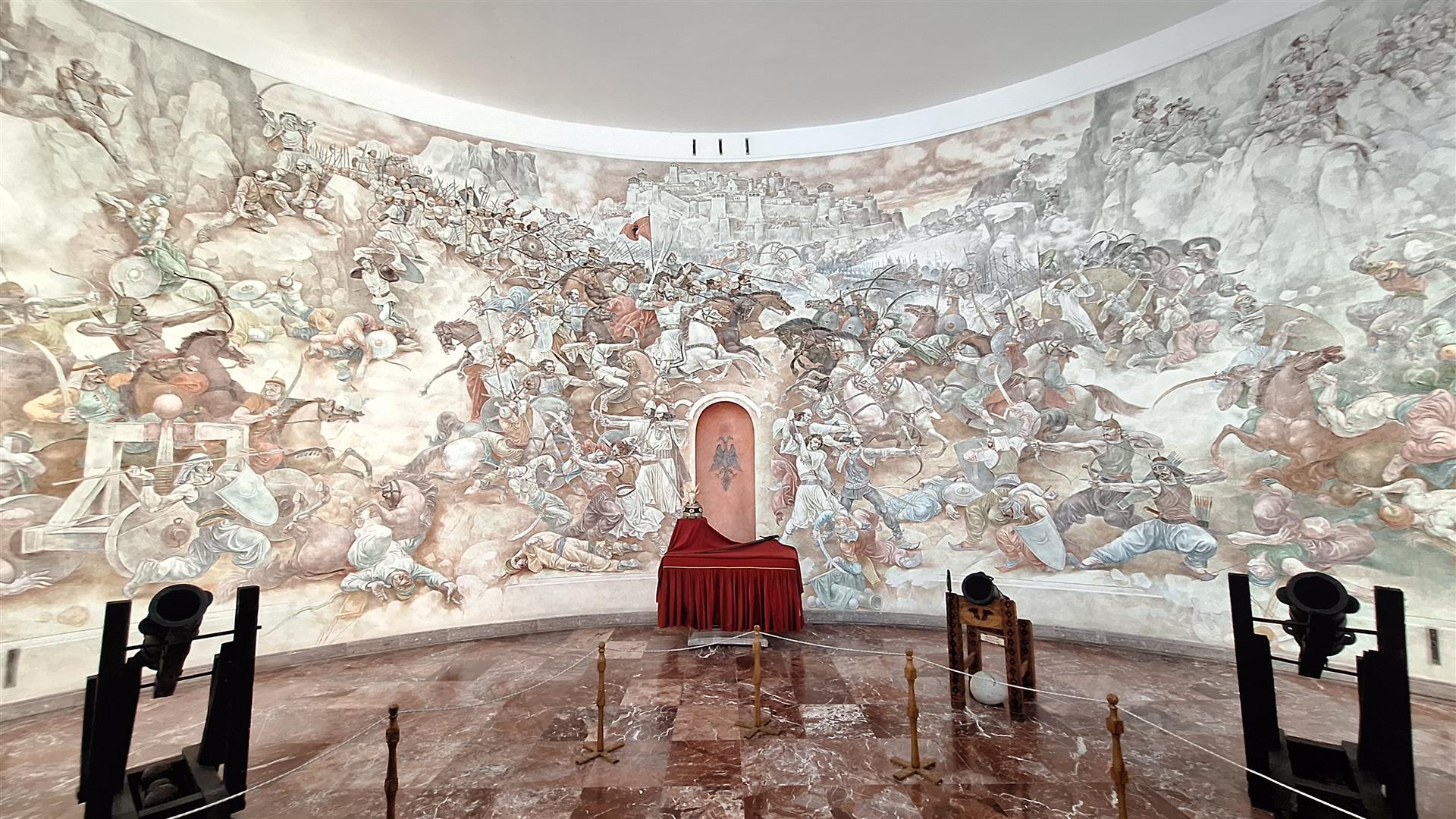 Another building was newly built but looked very good. It covered the history of the area and had some amazing murals of some of the battles fought with the Ottomans. The Albanians tried really hard, resisting three different sieges, but were beaten in the end. There were various other buildings in the complex, in different states of repair. Evidence of a Byzantine church had been found but the main religious building was a mosque.