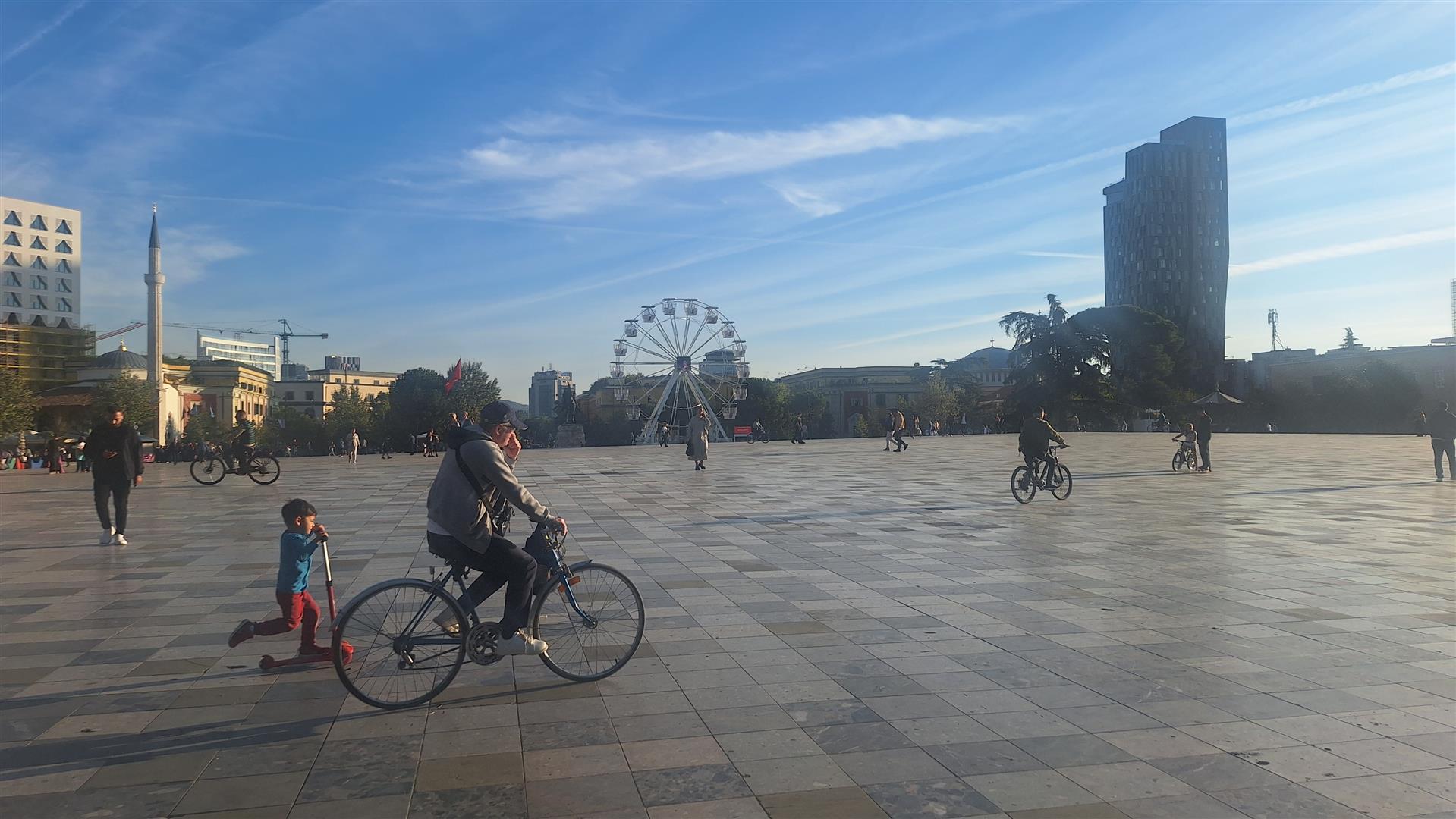 I sat down for a while in Skanderberg Square, which has a Ferris wheel and is a vast open space in the centre of town. The most noticeable things there were the numbers of electric scooter riders who just blasted their way across the square, heedless of pedestrians or anybody else. But that wasn’t really the case as they carefully avoided any collisions. But I felt like one of those fixed cameras that had no choice other than to record what passed in front of them, as scooters and bikes came past me from all directions.