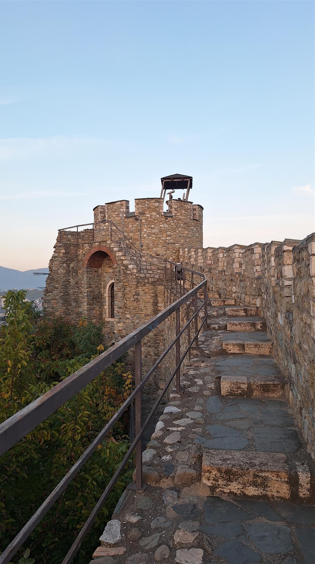 Once settled in to my hostel bed I decided to go for a walk. There’s a large fort on top of a hill, which I was able to wander around. There aren’t many buildings remaining inside although the walls and their towers are quite well preserved. Skopje suffered a very damaging earthquake in 1963, destroying many buildings, including historical ones. I’m guessing that the interior of the fort was included and that it’s not been thought of as worth completely restoring. But there was no information about it inside so that’s just an assumption. I walked along the walls, with views over the town and of a very glowing sunset.