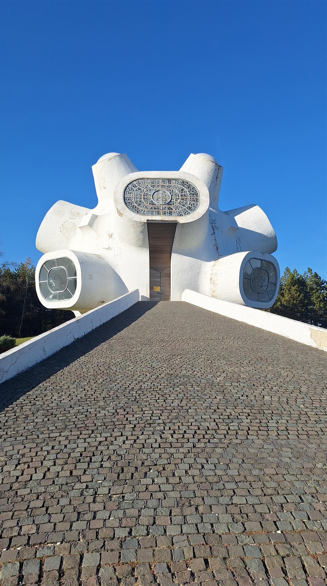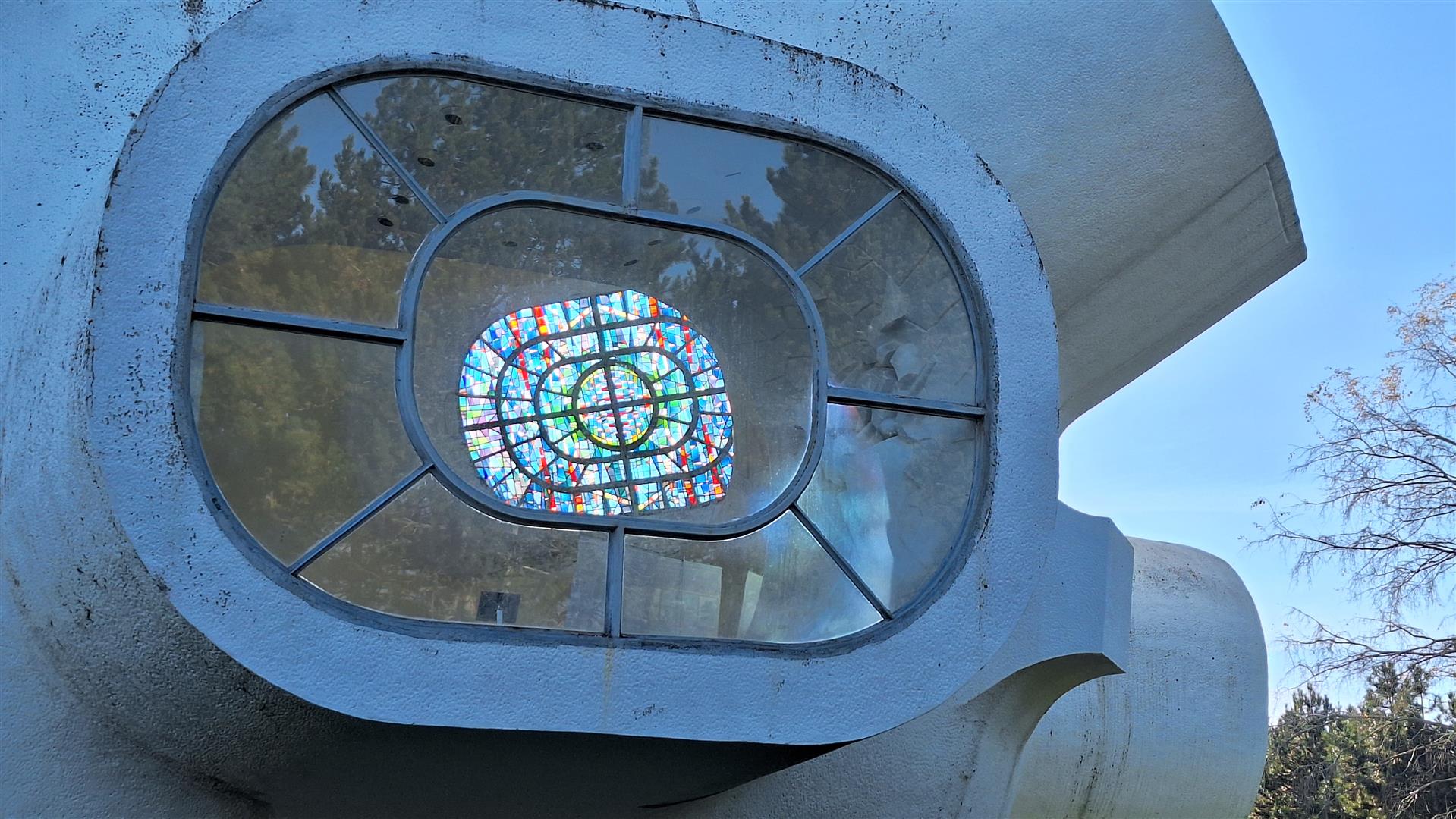 This is another spotemik, dedicated to the martyrs of the Ilinden uprising against the Ottomans. It looks quite stunning and the design is very impressive. When I looked through the lower windows I could see the light from the stained glass upper windows shining on the walls inside. It looks very arty. Down by the car park were some sculptures that reflected the Ottoman occupation during the time of the uprising. A very good place.