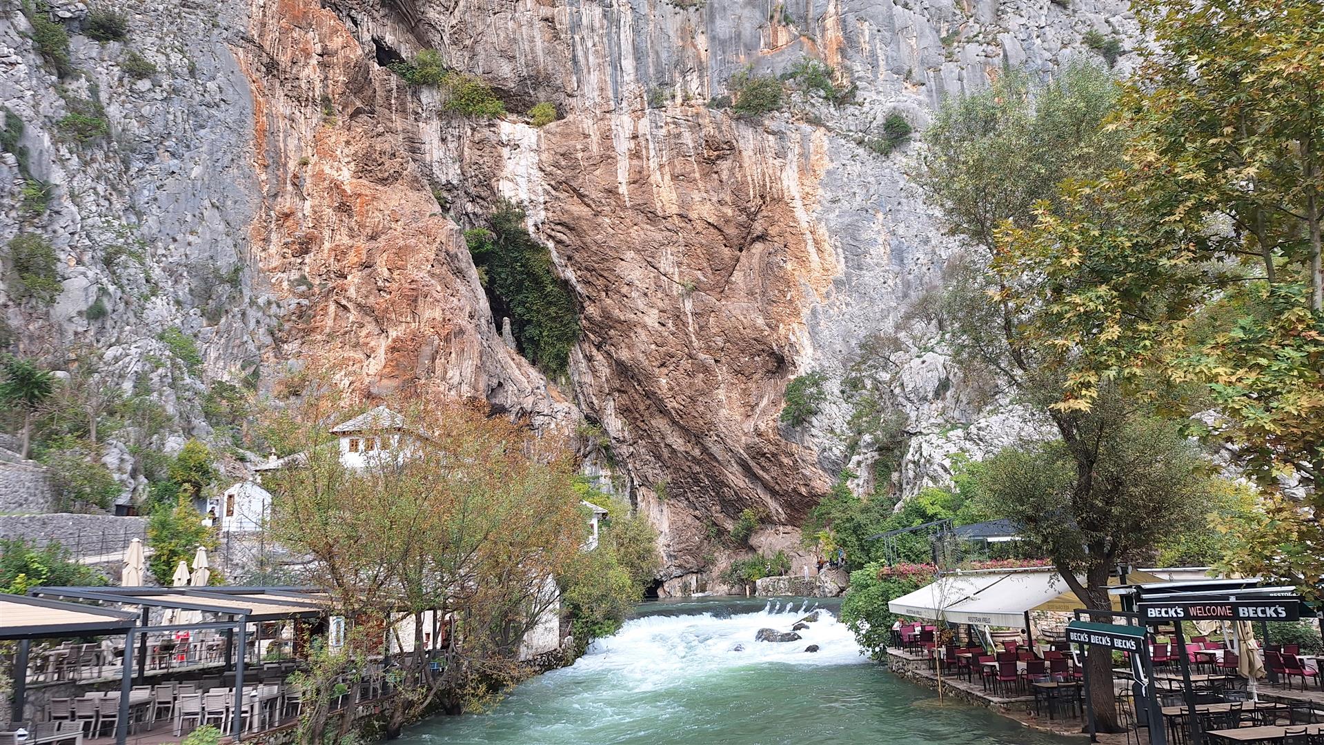 I left them to it and cracked on. It wasn’t too much further to the Tekija Blagaj monastery, which is a Dervish House. It’s a small building with a few prayer rooms in it. But it has some history. It sits at the source of the Buna river and has been rebuilt several times because of the destructive effect of rocks falling from the cliffs above. You may have heard of the phrase, Whirling Dervishes. These don’t whirl, they chant, two or three nights a week, in praise of Allah. It’s a pilgrimage site so gets plenty of visitors.