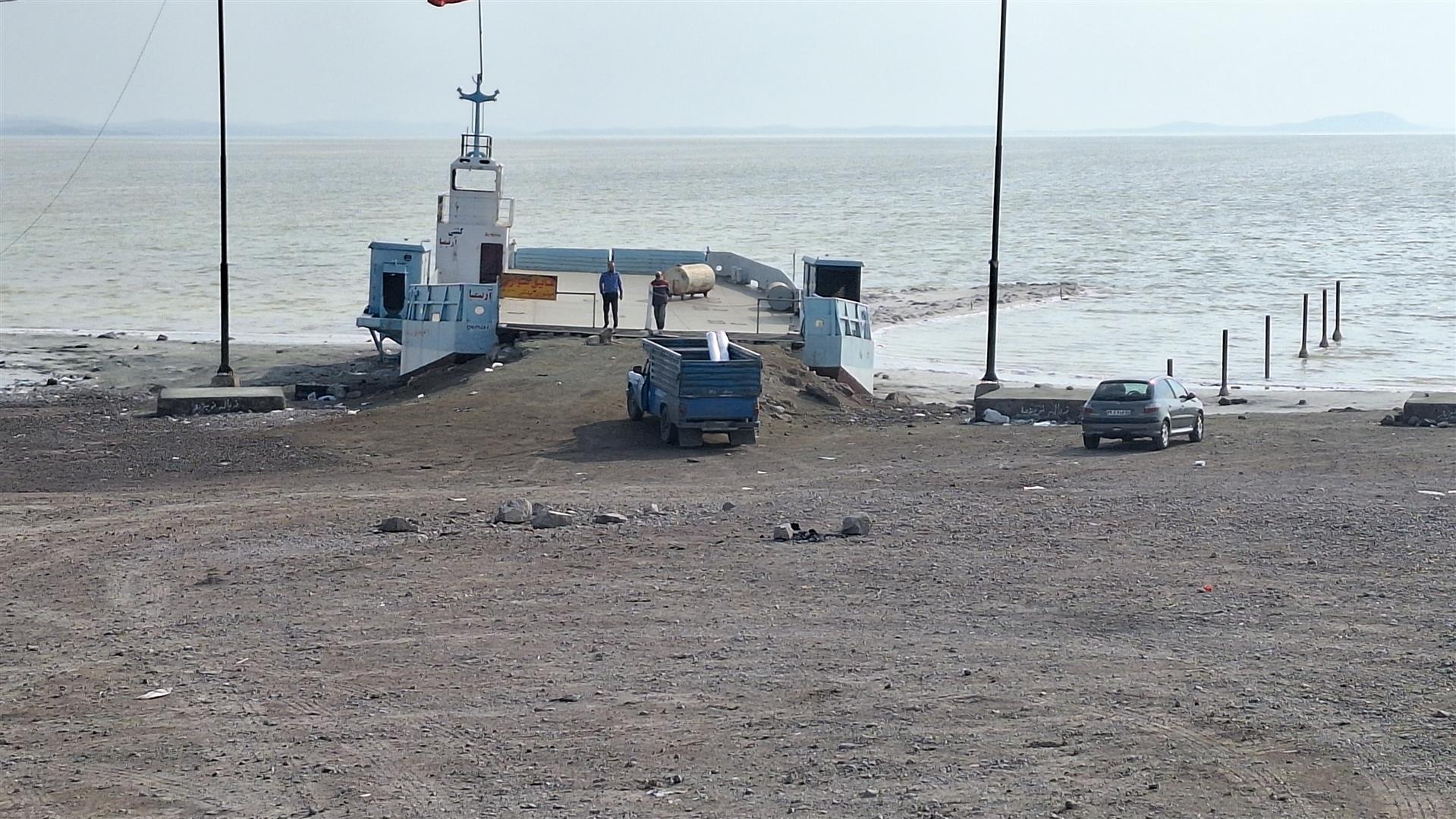 It was in the middle of the causeway that used to cross the lake but now crosses a vast salt pan. There is almost no water left in it. I’d heard there was a ships’ graveyard out there but that wasn’t the case. Almost out by the bridge I saw what I thought was a ferry waiting to load up. But it turned out to just be a mooring point.