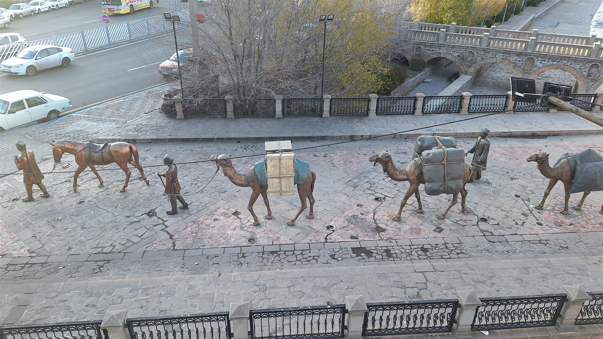 On the way back to the hostel I went to the Qari Bridge. About two hundred years old, it has eight arches and very decorative stonework. There is a set of bronze sculptures next to it, showing a camel train. The type of traffic the bridge would have carried in past times.