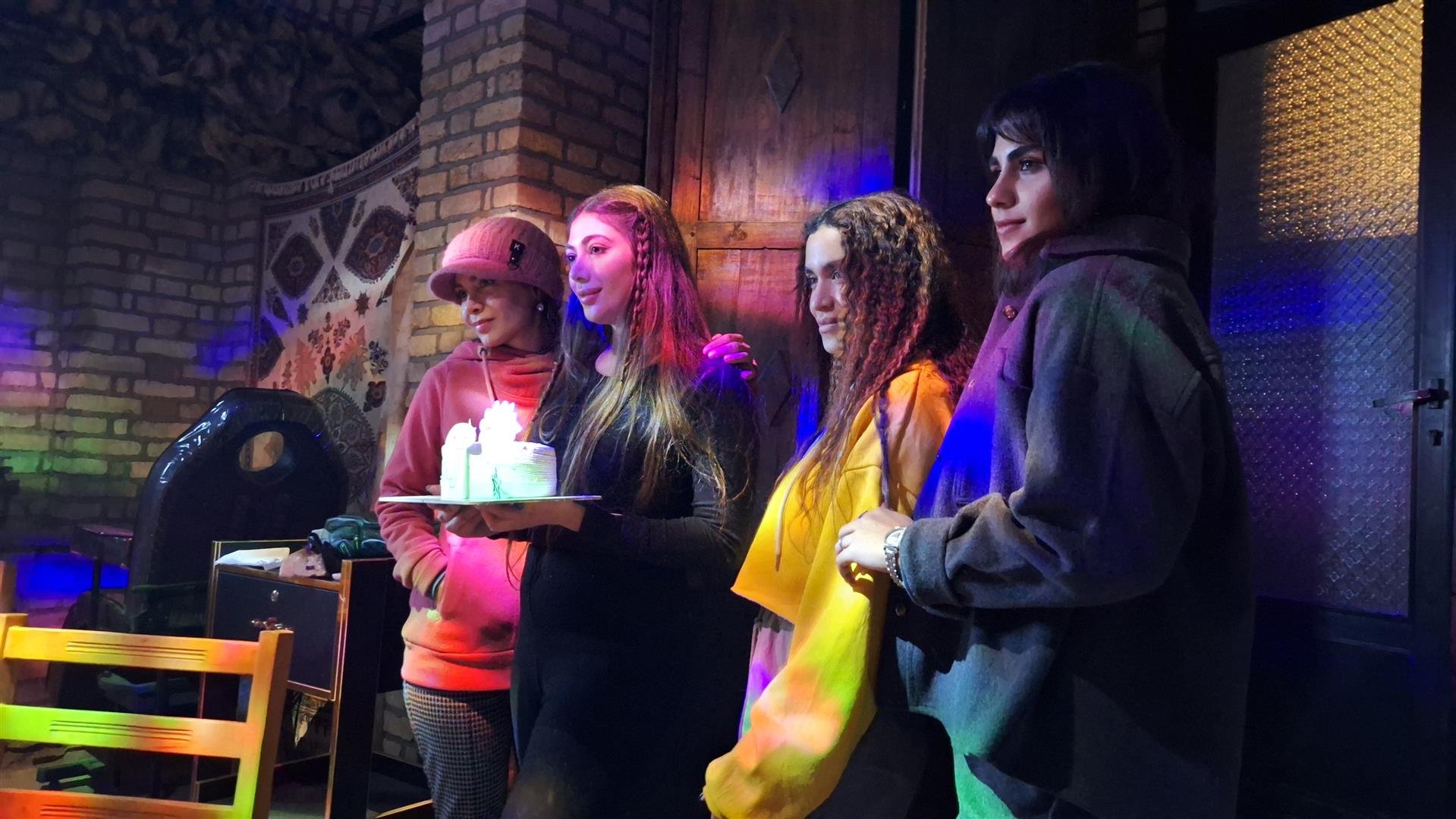 Cake was cut and shared. A bit of dancing ensued. When I showed one of the girls a photo of me in my twenties she told me I was handsome . Other jokes were also made. A very nice introduction to hostel life in Esfahan.