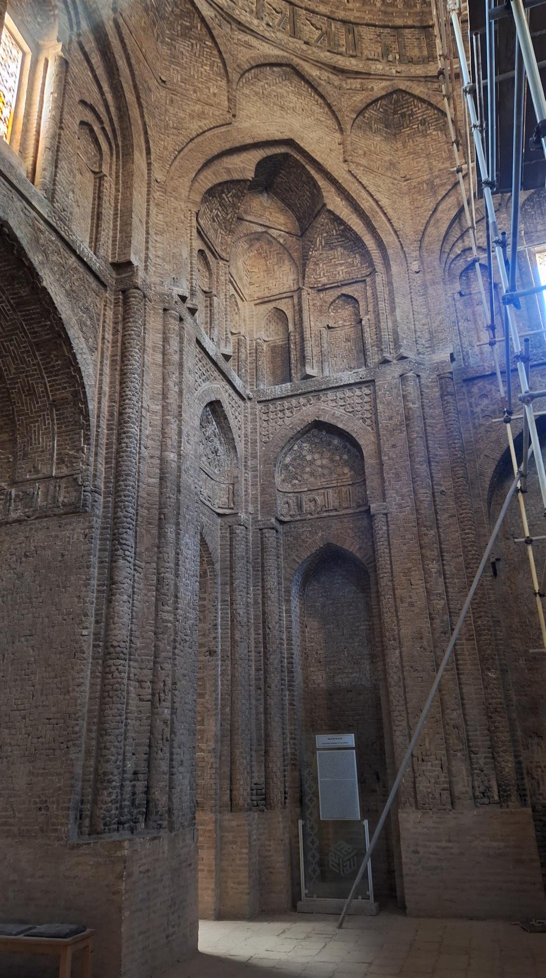 The inner parts of the mosque were now open so we had a wander round. The dome is very impressive and it has inlaid writing on the bricks up inside it. But what fascinated me most were the wonky pillars, leaning in or out. I speculated it was earthquake damage but we came to the conclusion it was probably just settlement, as suggested by a crack running down one wall. Maybe it’s a bit of both. It had a very medieval atmosphere, with dark corners and very little by way of decoration inside.